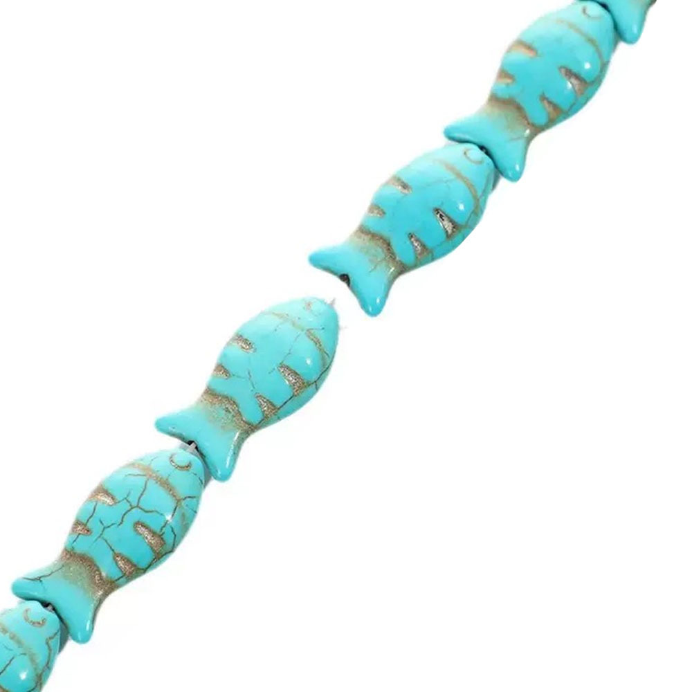 I monili misti, turchese sintetico, Pesce, Inciso, DIY, nessuno, 11x24mm, Appross. 17PC/filo, Venduto da filo