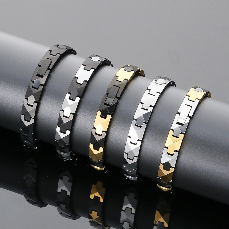 In acciaio al tungsteno braccialetto, with Nero -Magnetico-Pietra, placcato, gioielli di moda & per l'uomo, nessuno, Lunghezza Appross. 7.5 pollice, Venduto da PC