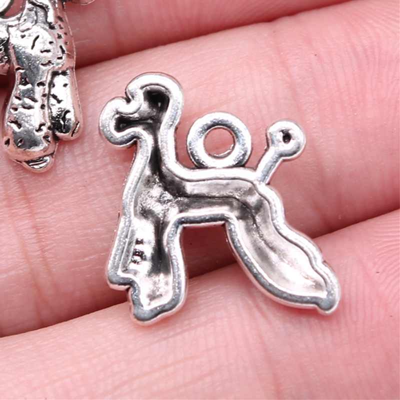 In lega di zinco animali pendenti, lega in zinco, Cane, placcato argento antico, DIY, 21x18mm, 10PC/borsa, Venduto da borsa