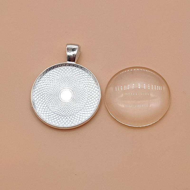 In lega di zinco del pendente Cabochon Setting, lega in zinco, Cerchio, placcato color platino, DIY, 25mm, Venduto da PC