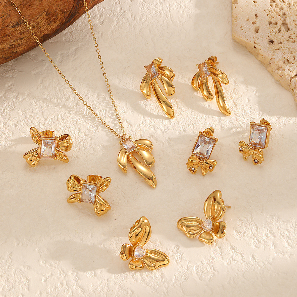 Insiemi di gioielli in acciaio inox zirconia cubica, Orecchino a bottone, 304 acciaio inox, placcato, gioielli di moda & Micro spianare cubic zirconia, nessuno, Venduto da PC