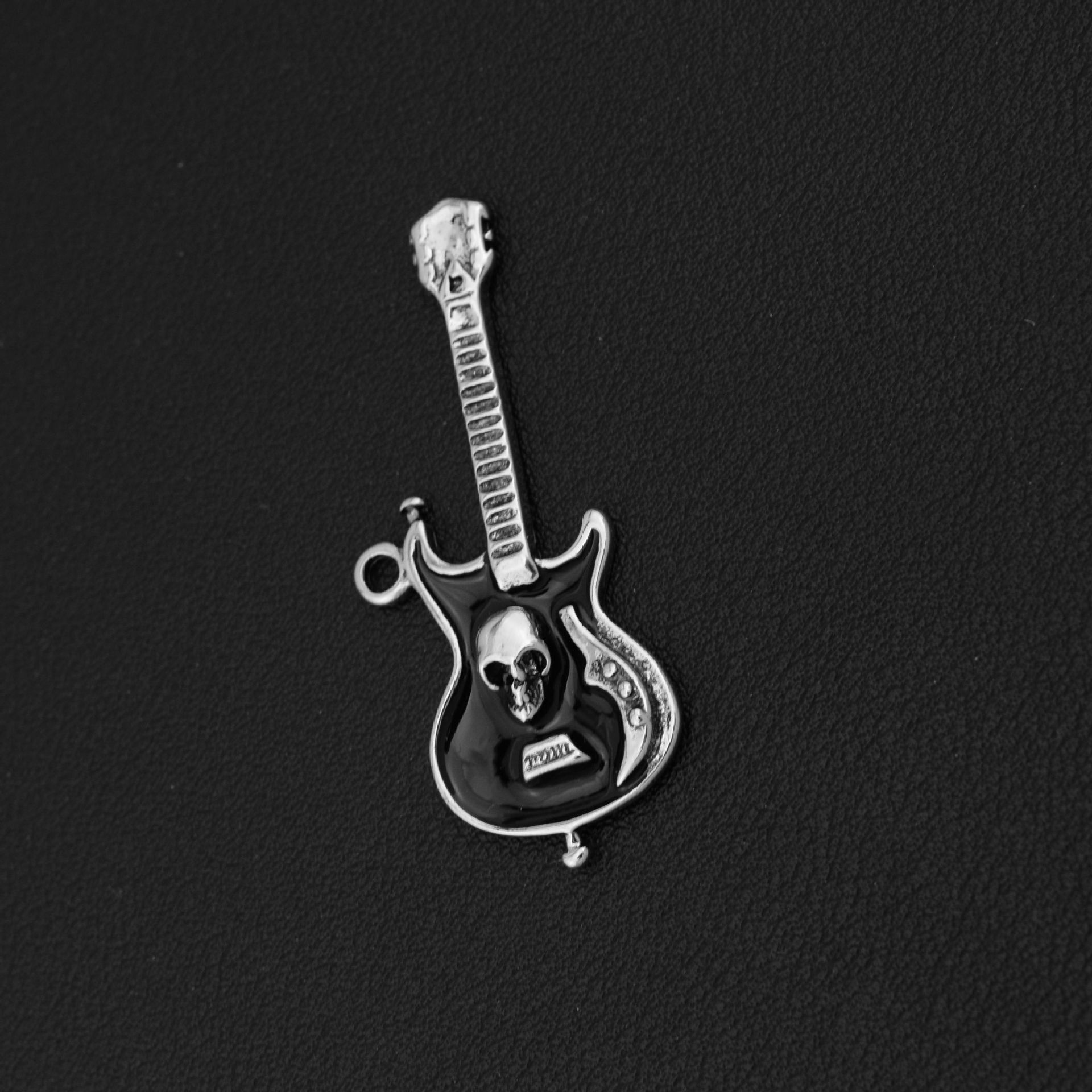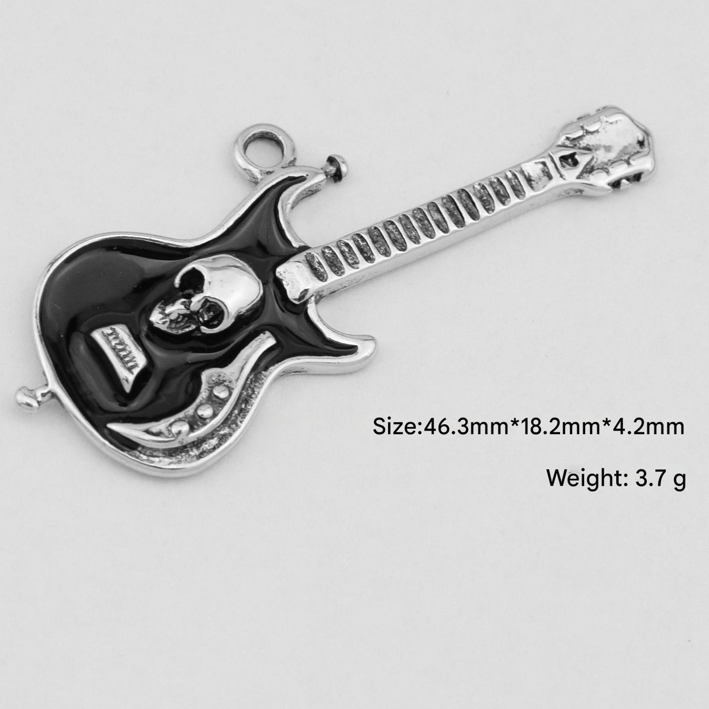 Strumento musicale a forma di ciondoli in lega di zinco, lega in zinco, chitarra, placcato color argento, DIY & smalto, colori misti, Venduto da PC