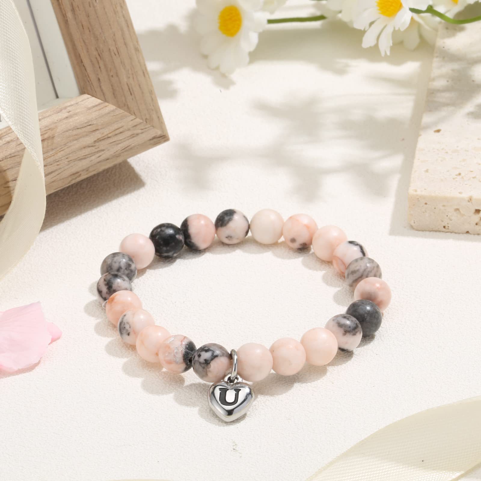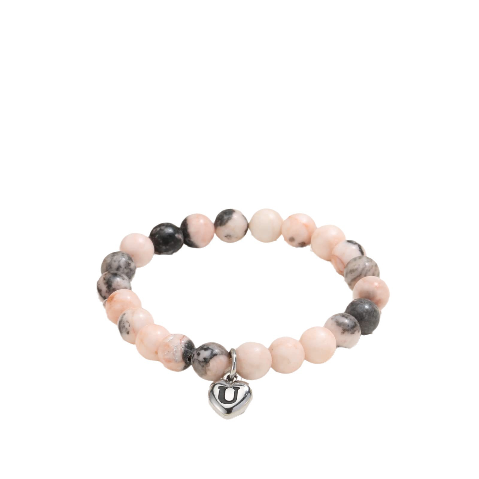 diaspro zebra braccialetto, with 304 acciaio inox, Cuore, fatto a mano, stili diversi per la scelta & con modello lettera & per la donna, Lunghezza Appross. 6-10 pollice, Venduto da PC