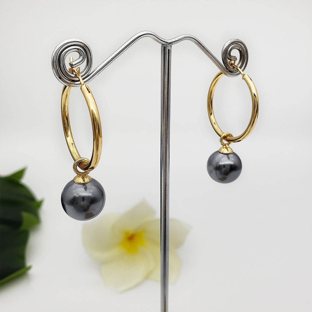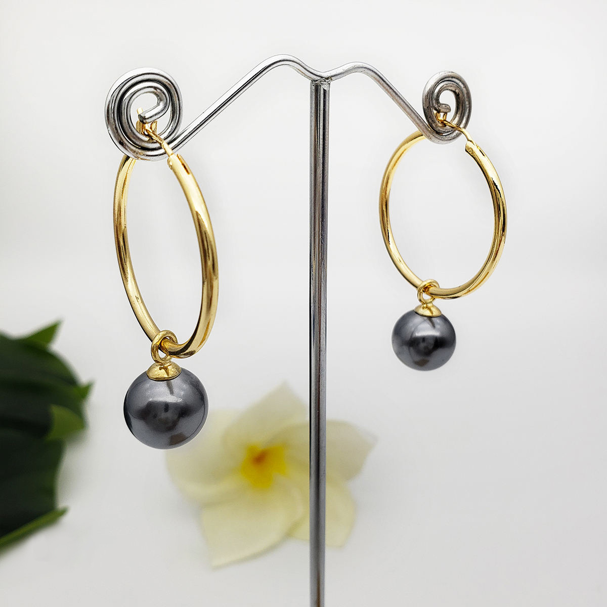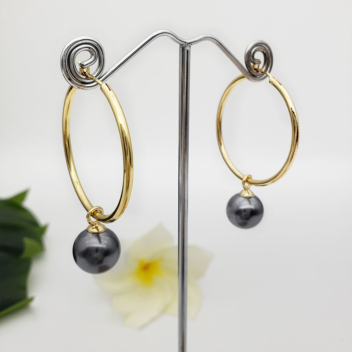 Ottone Orecchino ad anello, with perla in plastica, placcato color oro, gioielli di moda & formato differente per scelta & per la donna, Venduto da coppia