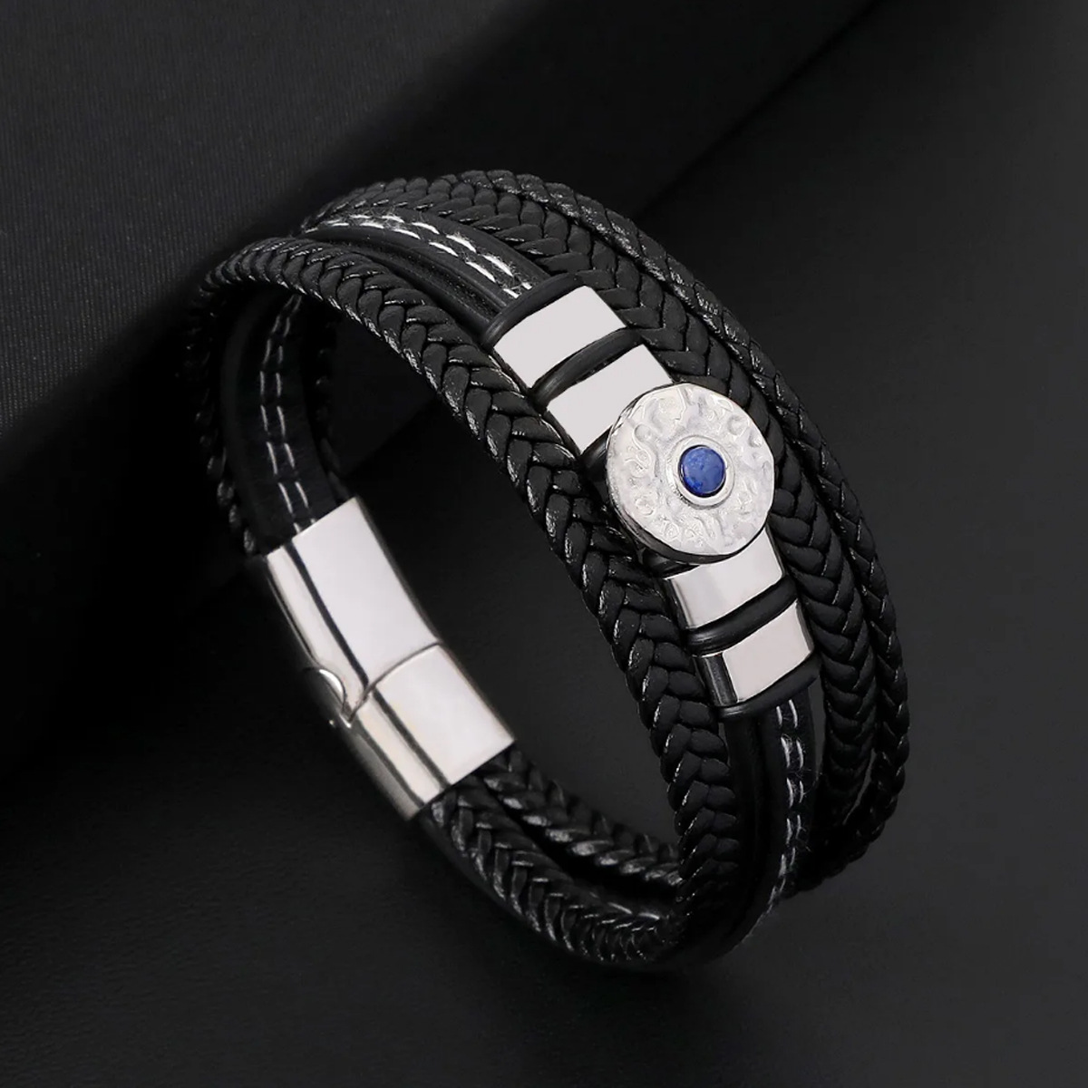 Lapislazzuli naturali bracciali, PU microfibra, with Lapislazzuli & 316 acciaio inox & 304 acciaio inox, fatto a mano, gioielli di moda & multistrato & per l'uomo, nessuno, Lunghezza 21 cm, Venduto da PC