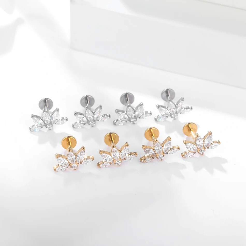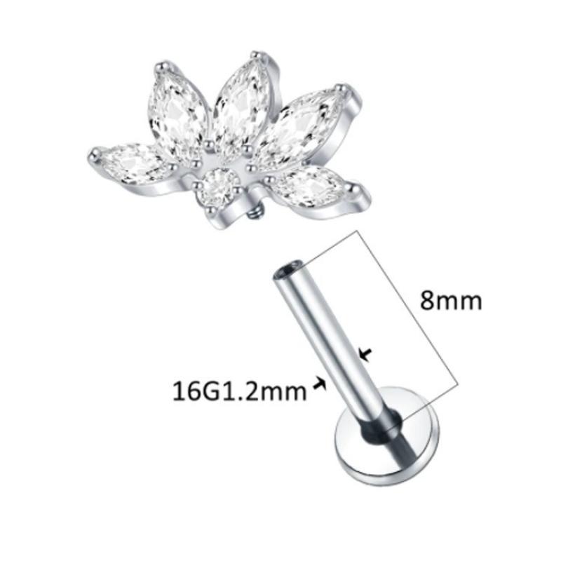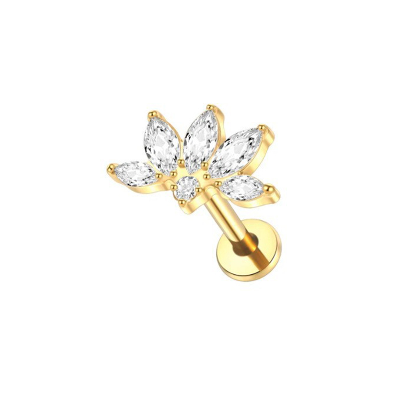 Lega di titanio orecchino piercing, with ottone, Fiore, placcato, unisex & Micro spianare cubic zirconia, nessuno, Venduto da PC