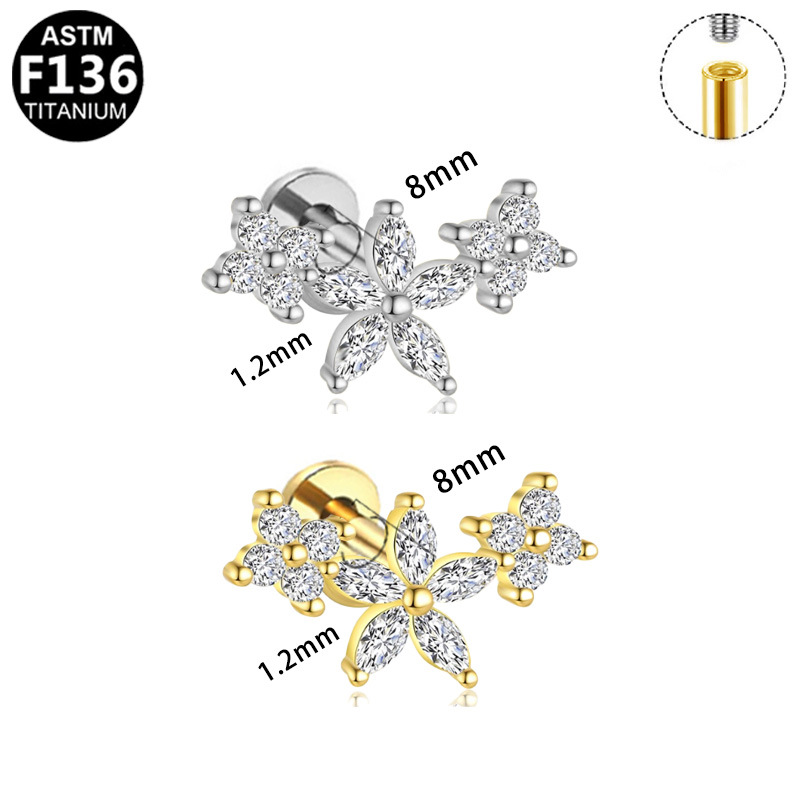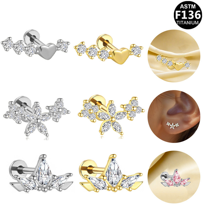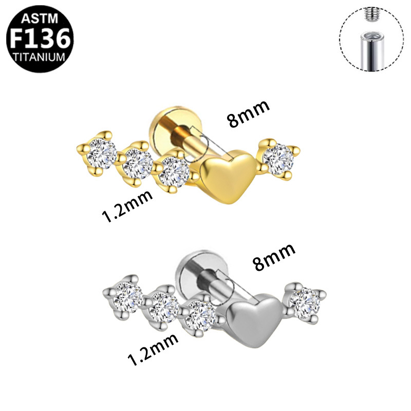 Lega di titanio orecchino piercing, placcato, unisex & stili diversi per la scelta & Micro spianare cubic zirconia, 8mm, Venduto da PC