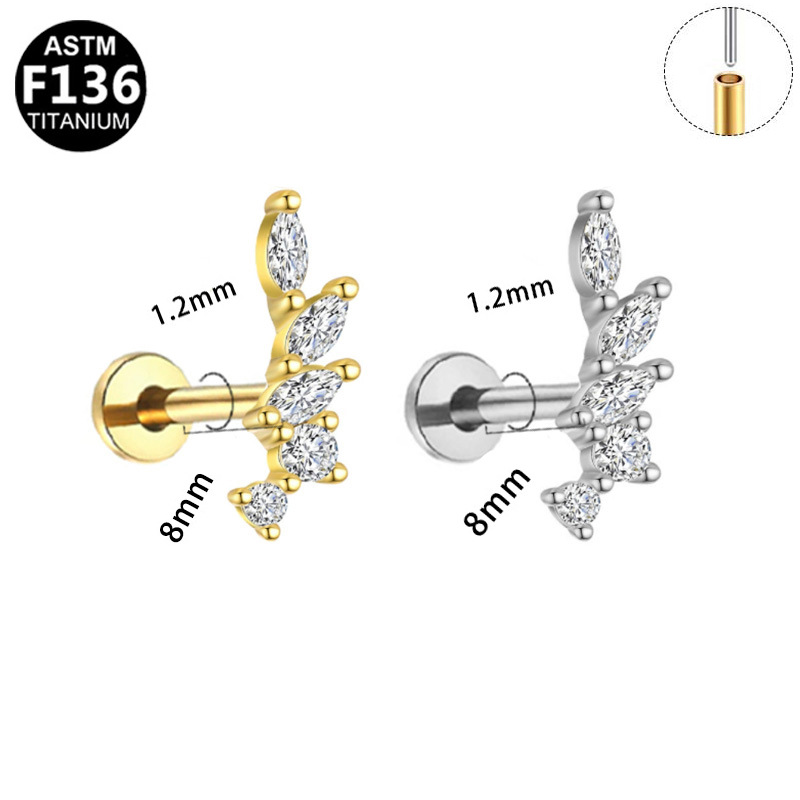 Lega di titanio orecchino piercing, placcato, unisex & stili diversi per la scelta & Micro spianare cubic zirconia, 8mm, Venduto da PC