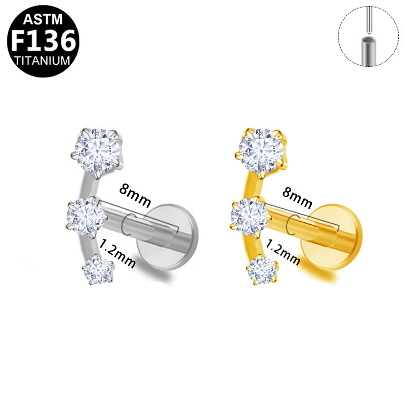 Lega di titanio orecchino piercing, placcato, unisex & stili diversi per la scelta & Micro spianare cubic zirconia, 8mm, Venduto da PC