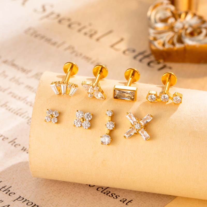 Lega di titanio orecchino piercing, placcato color oro, gioielli di moda & Micro spianare cubic zirconia, nessuno, Venduto da PC