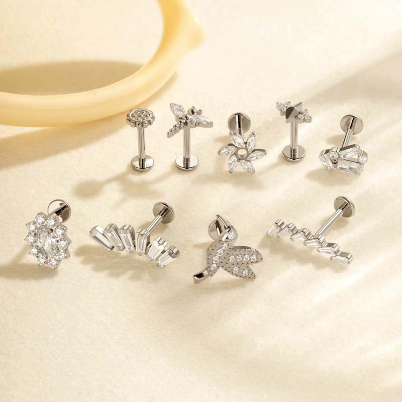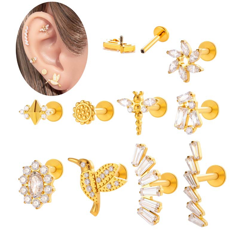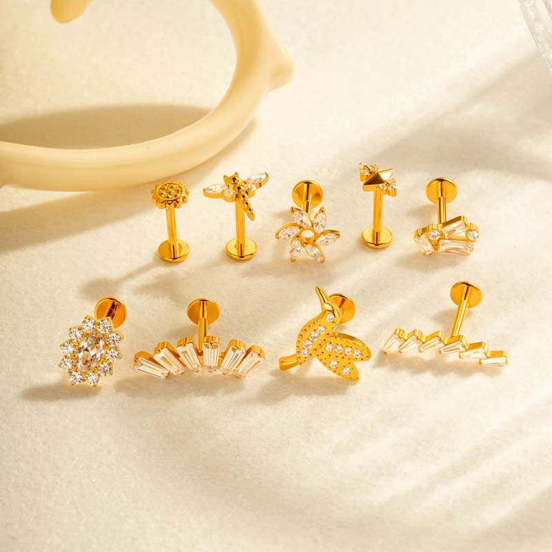 Lega di titanio orecchino piercing, placcato color oro, gioielli di moda & Micro spianare cubic zirconia, nessuno, Venduto da PC