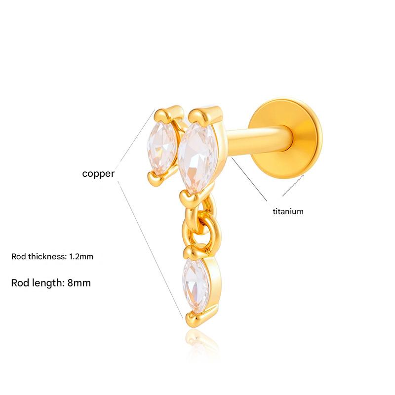 Lega di titanio orecchino piercing, with ottone, placcato color oro, gioielli di moda & Micro spianare cubic zirconia, nessuno, Venduto da PC