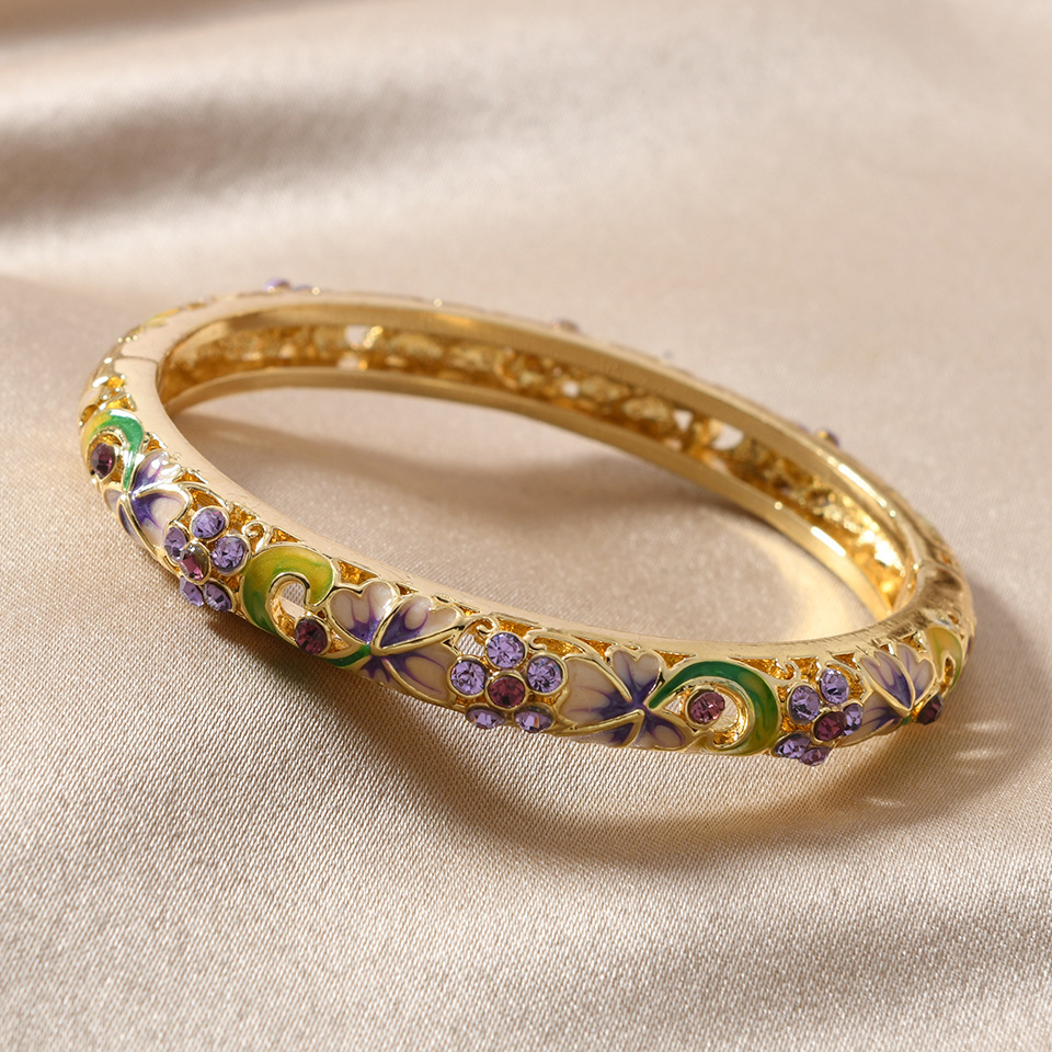 Lo zinco in lega Bangle Jewelry, lega in zinco, placcato color oro, gioielli di moda & smalto & con strass, nessuno, Venduto da PC