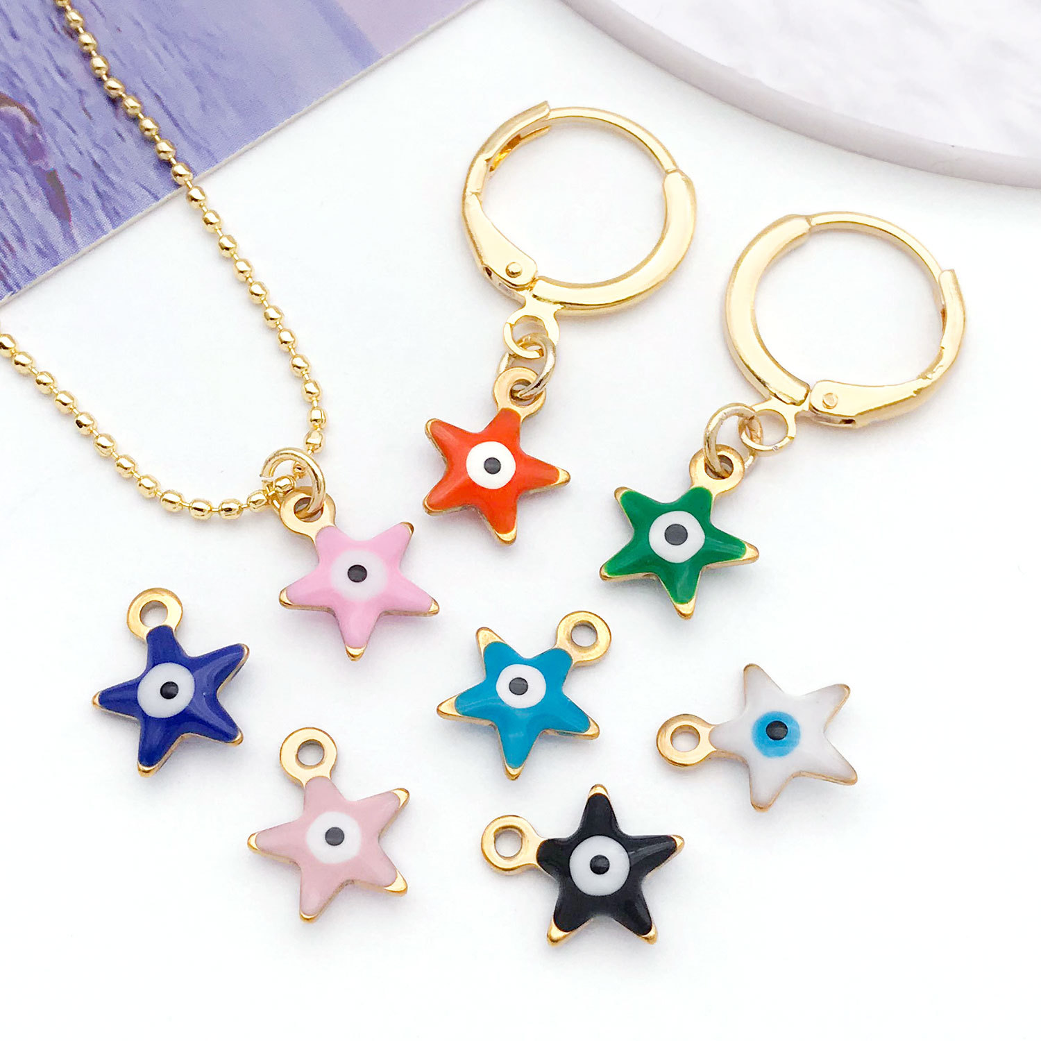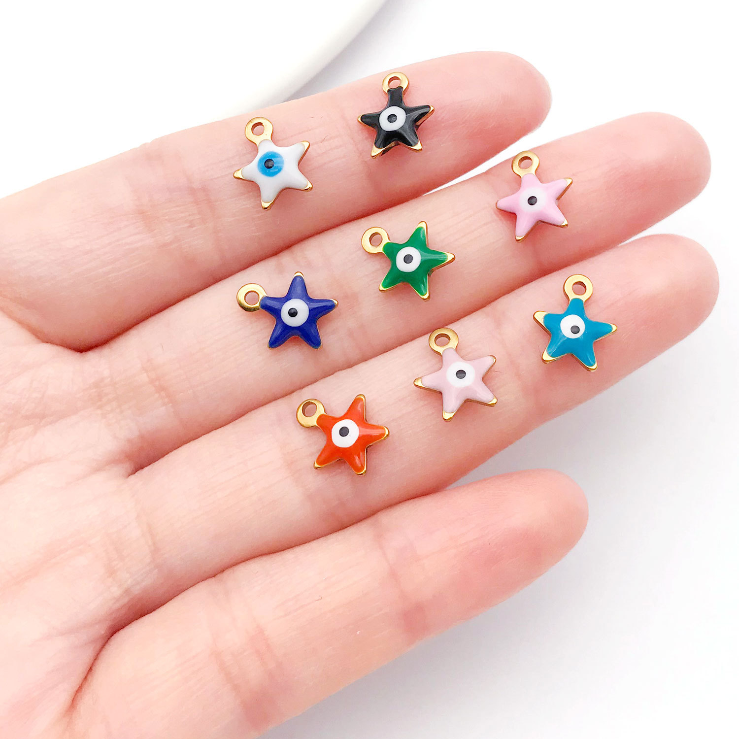 Malocchio pendenti, 304 acciaio inox, Stella, placcato color oro, DIY & smalto, nessuno, 9x10mm, Venduto da PC