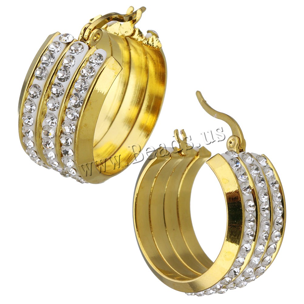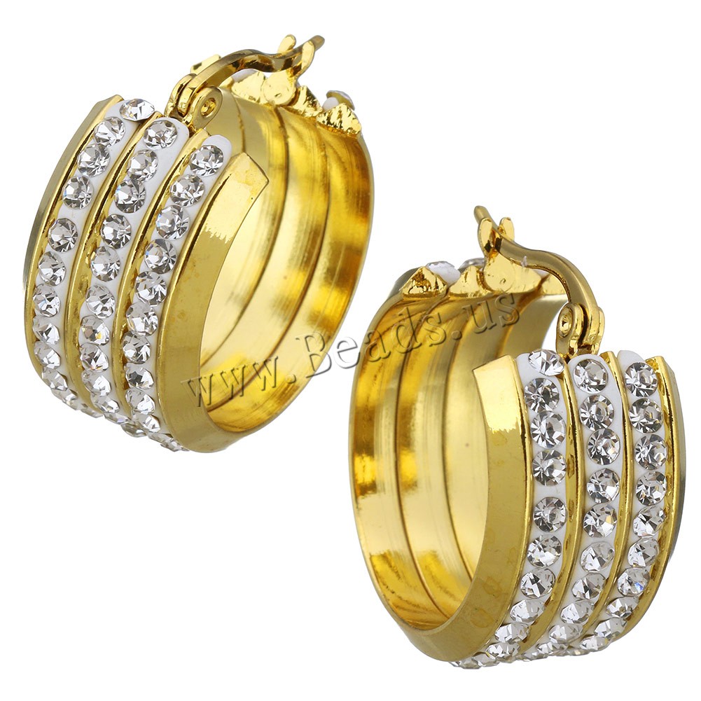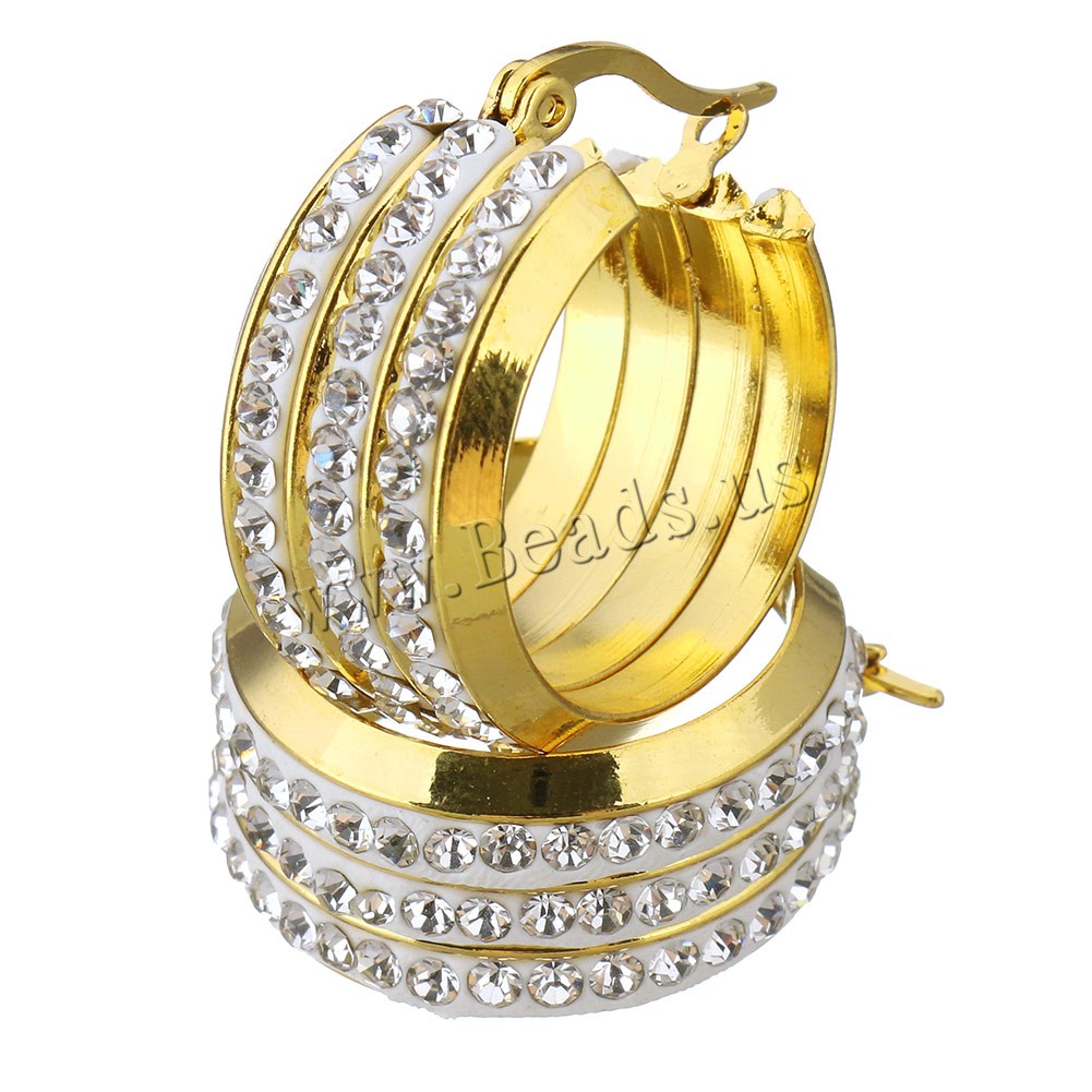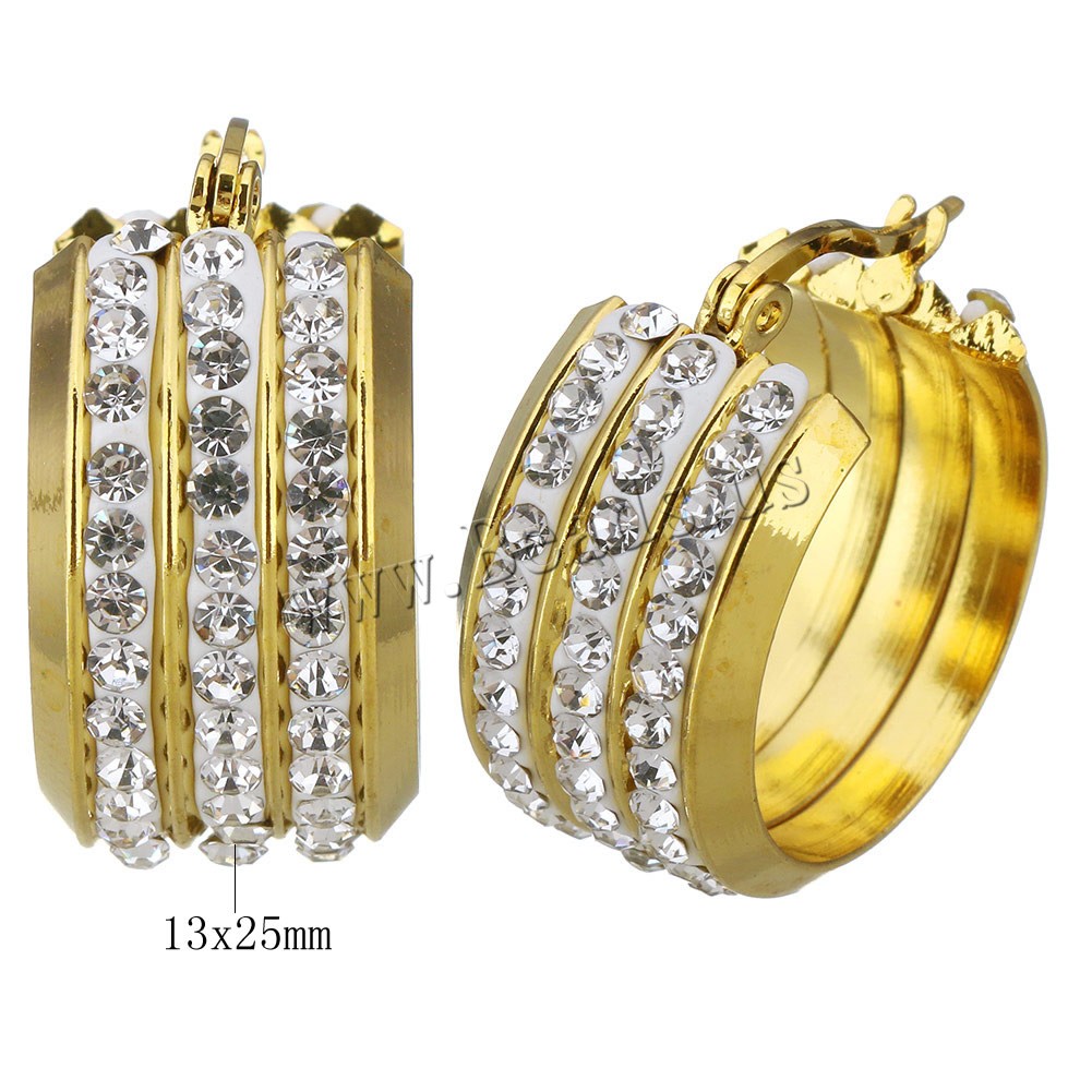 Mens Stainless Steel Hoop orecchino, acciaio inox, with argilla, placcato, per la donna, nessuno, 13x25mm, 5Pairspaio/lotto, Venduto da lotto