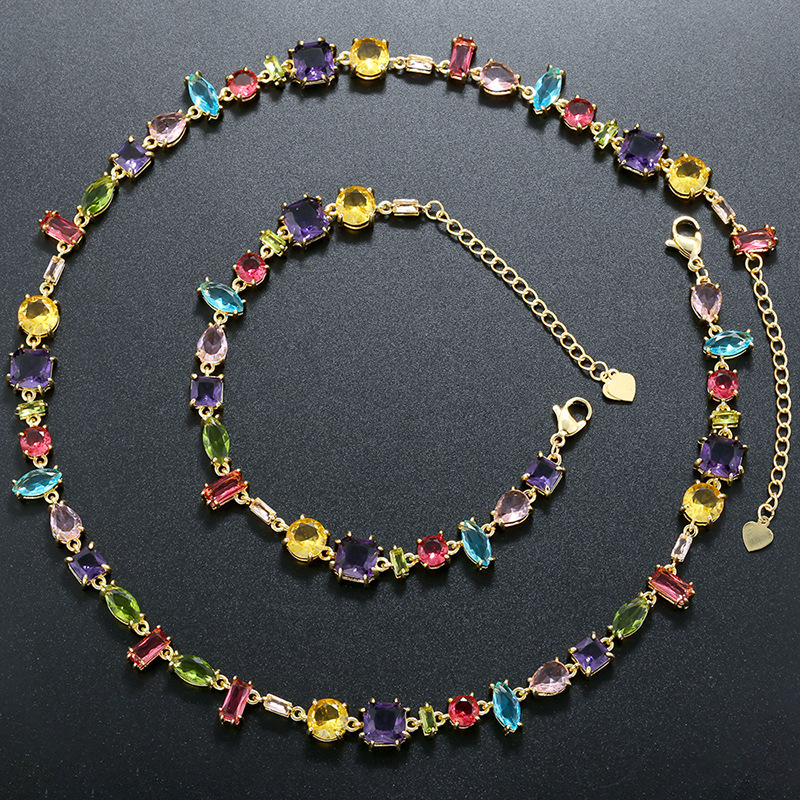 1:Vl585 gold colored diamond stitching bracelet2:Vl585 white gold color diamond stitching bracelet3:Vl586 gold colored diamond stitching necklace4:Vl586 white gold color diamond stitching necklace