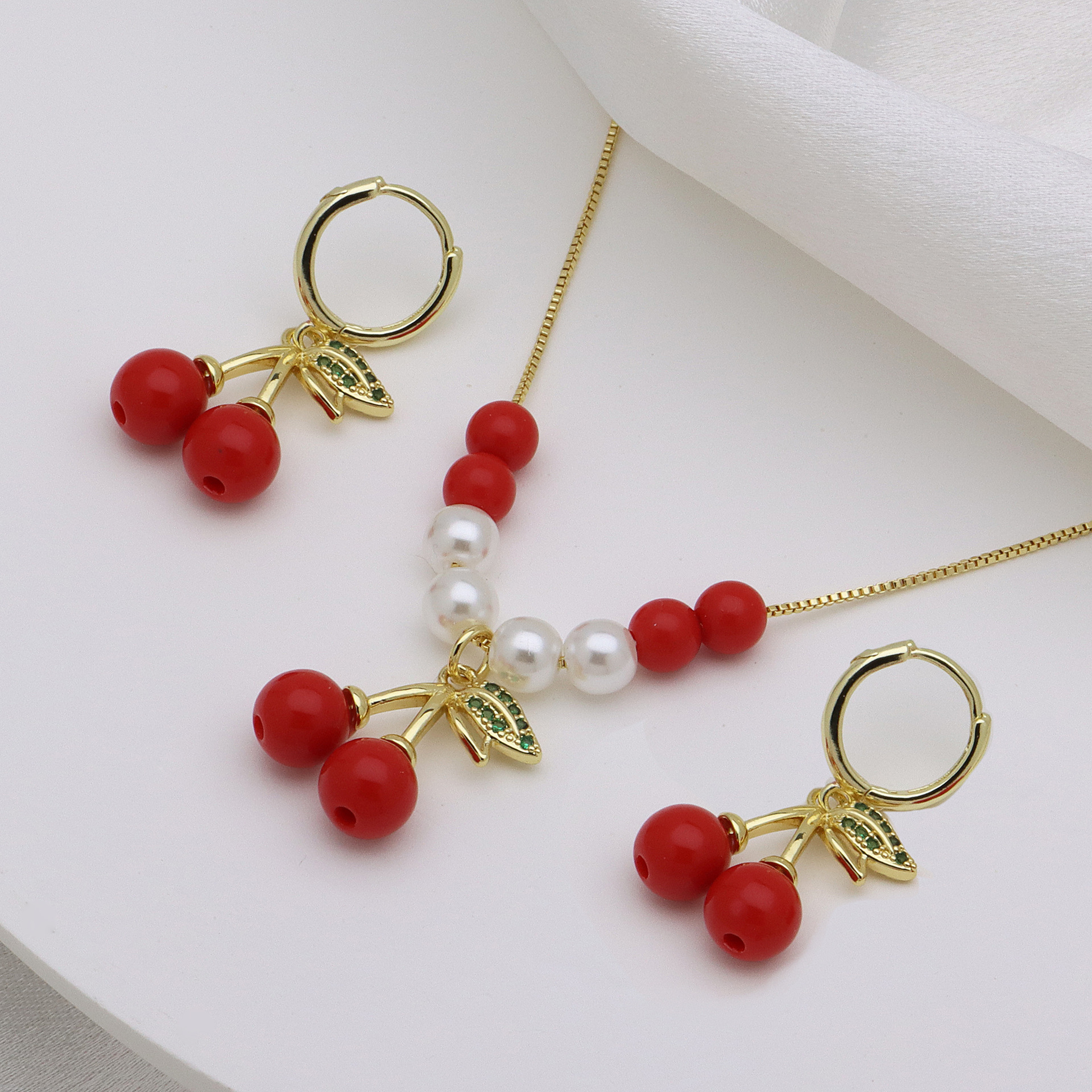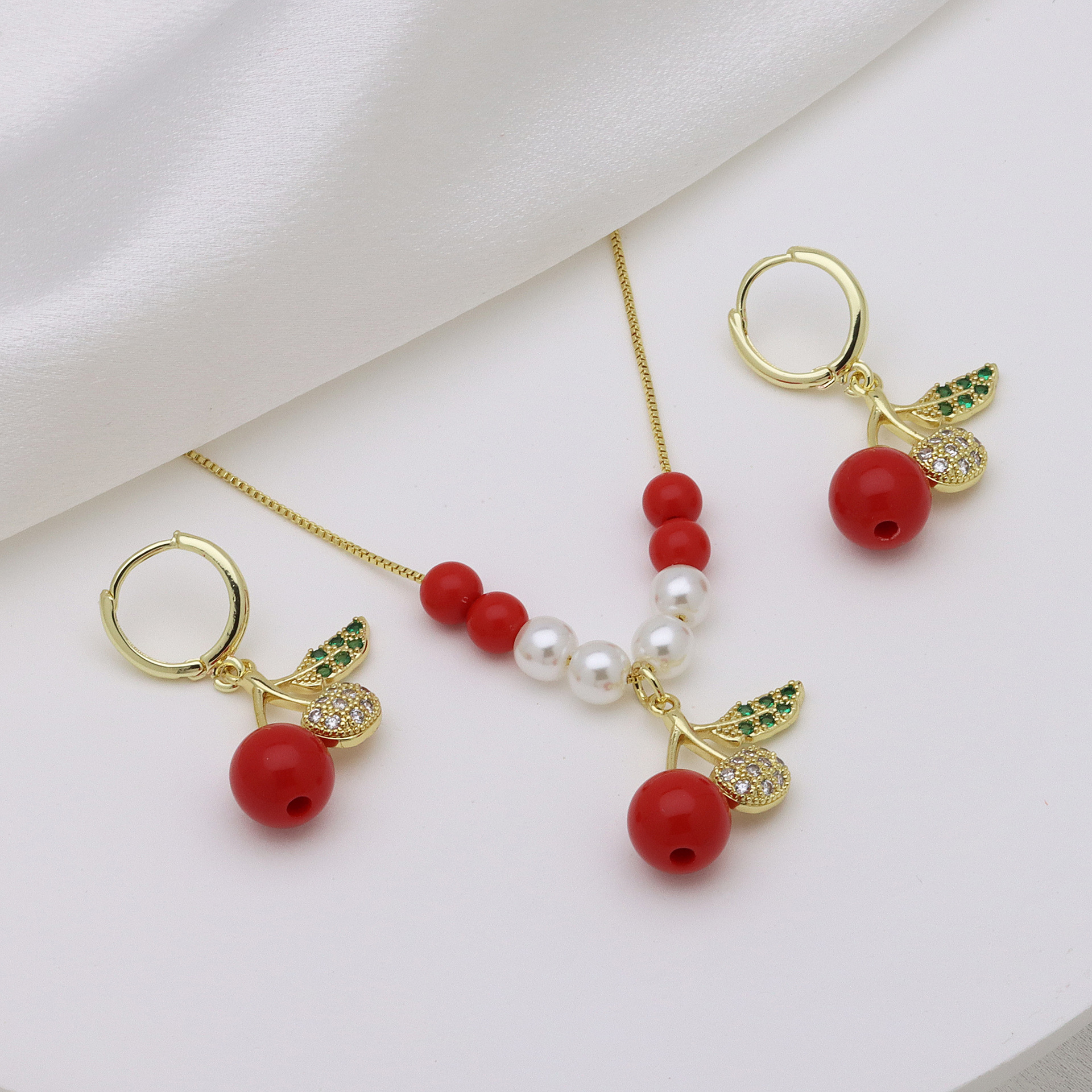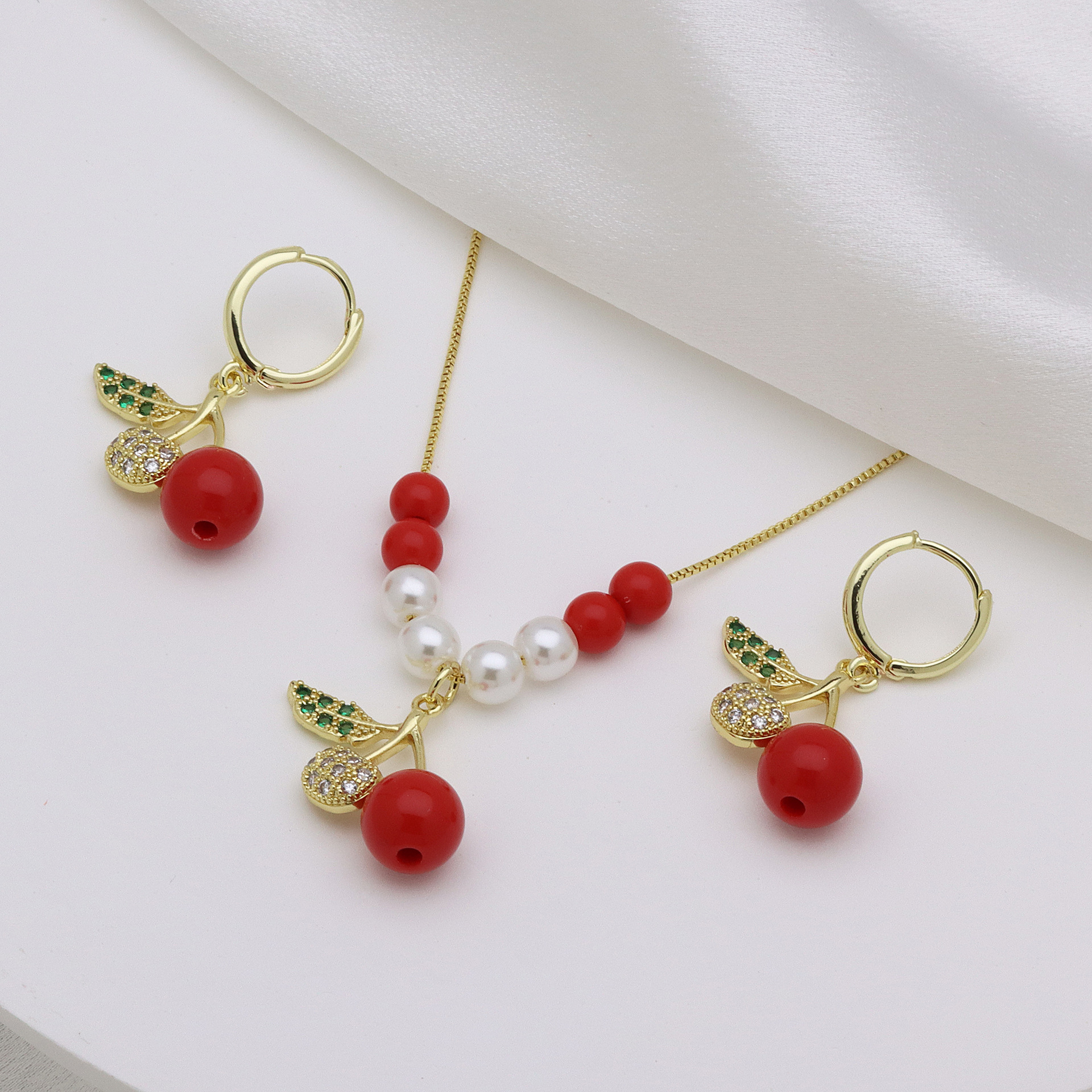 Micro zirconi Pave ottone Jewelry Set, with perla in plastica, placcato color oro, stili diversi per la scelta & Micro spianare cubic zirconia & per la donna & smalto, nessuno, Lunghezza Appross. 50 cm, Venduto da set