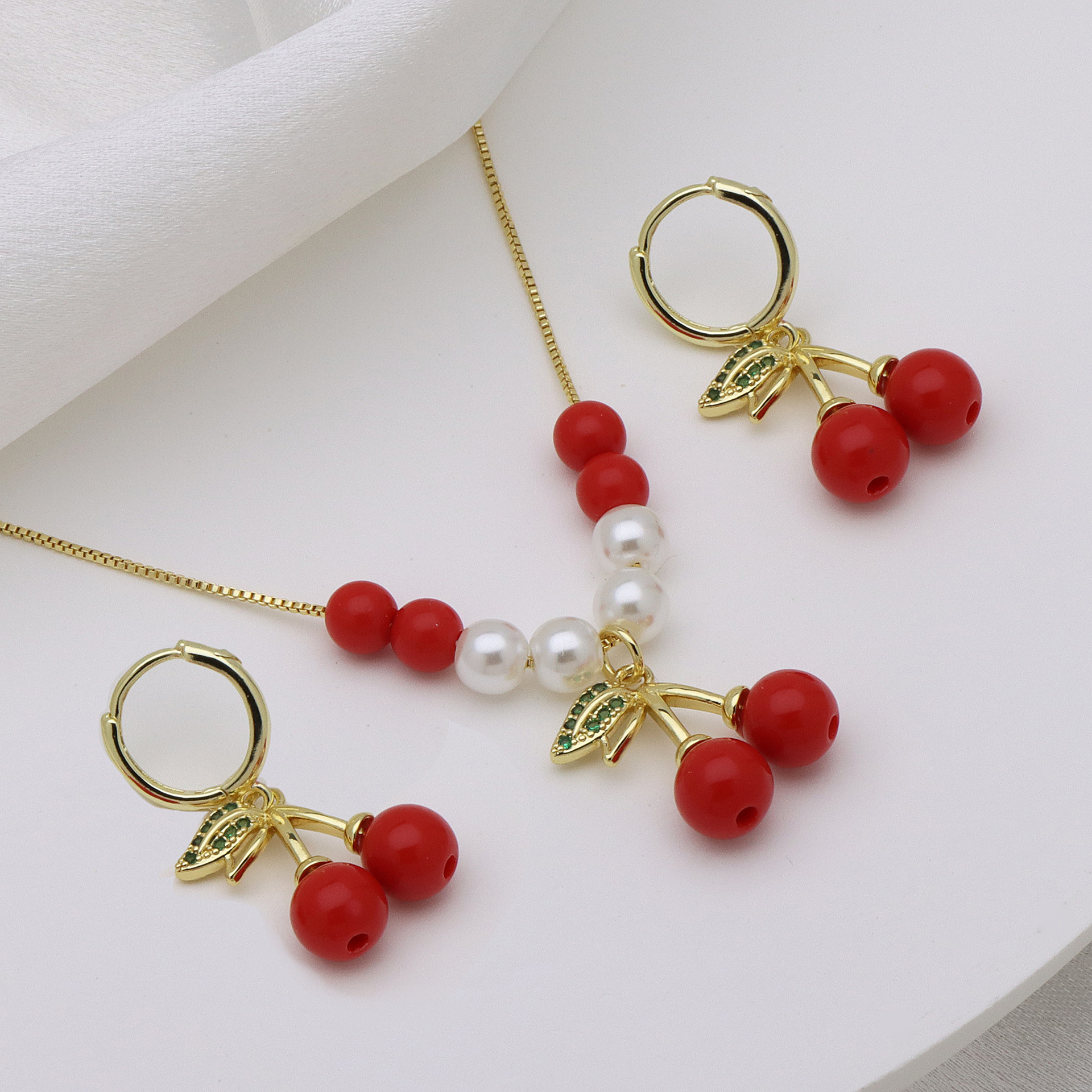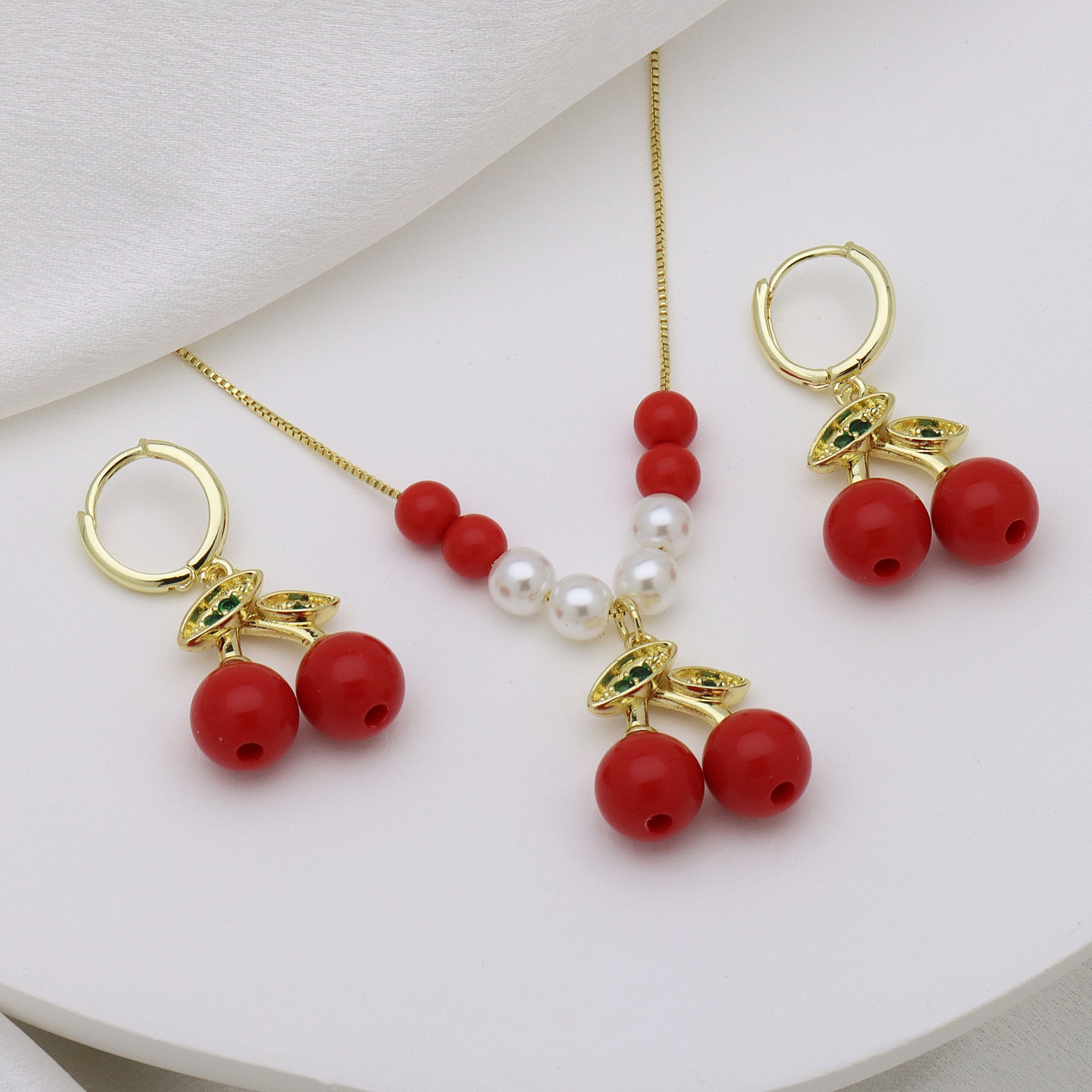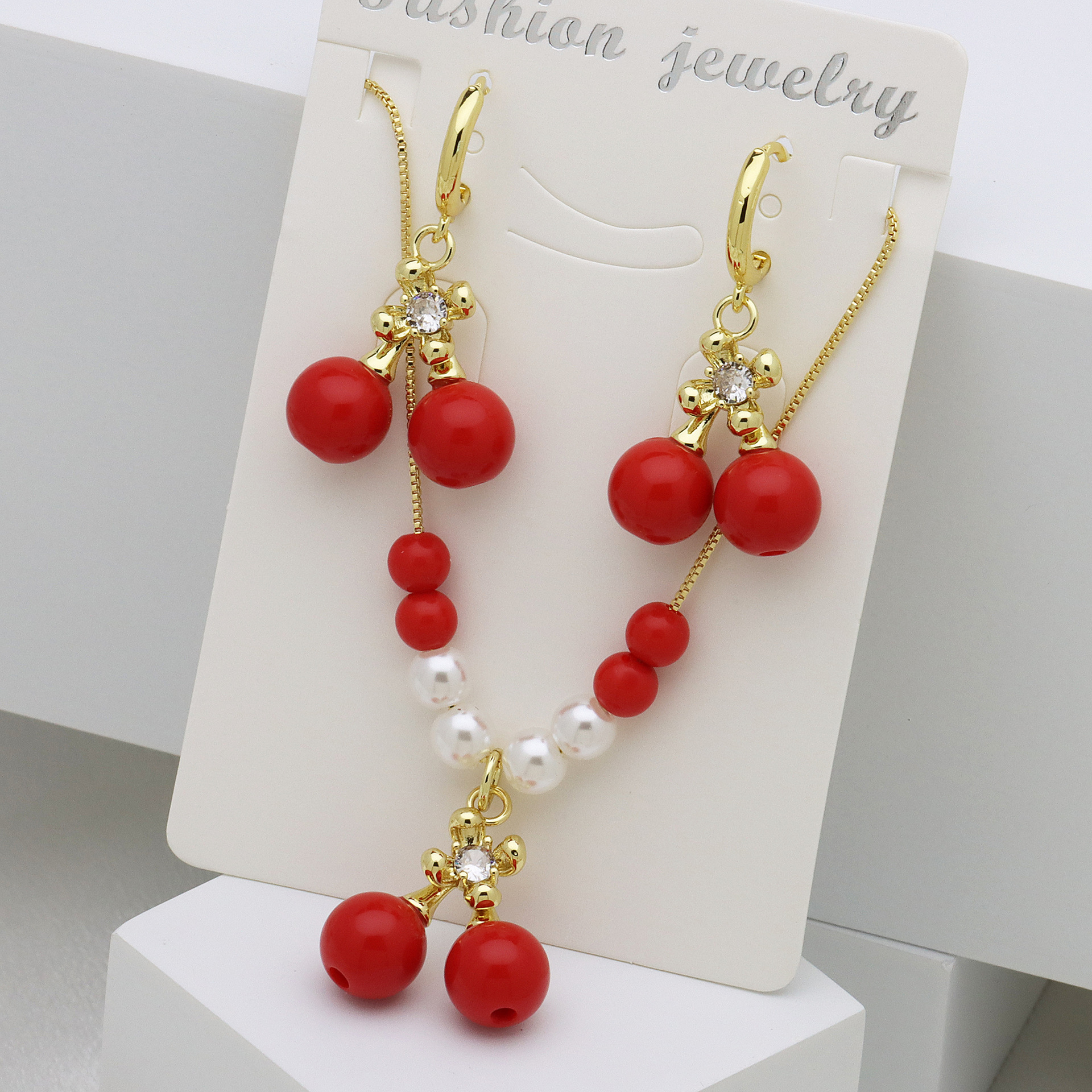 Micro zirconi Pave ottone Jewelry Set, with perla in plastica, placcato color oro, stili diversi per la scelta & Micro spianare cubic zirconia & per la donna & smalto, nessuno, Lunghezza Appross. 50 cm, Venduto da set