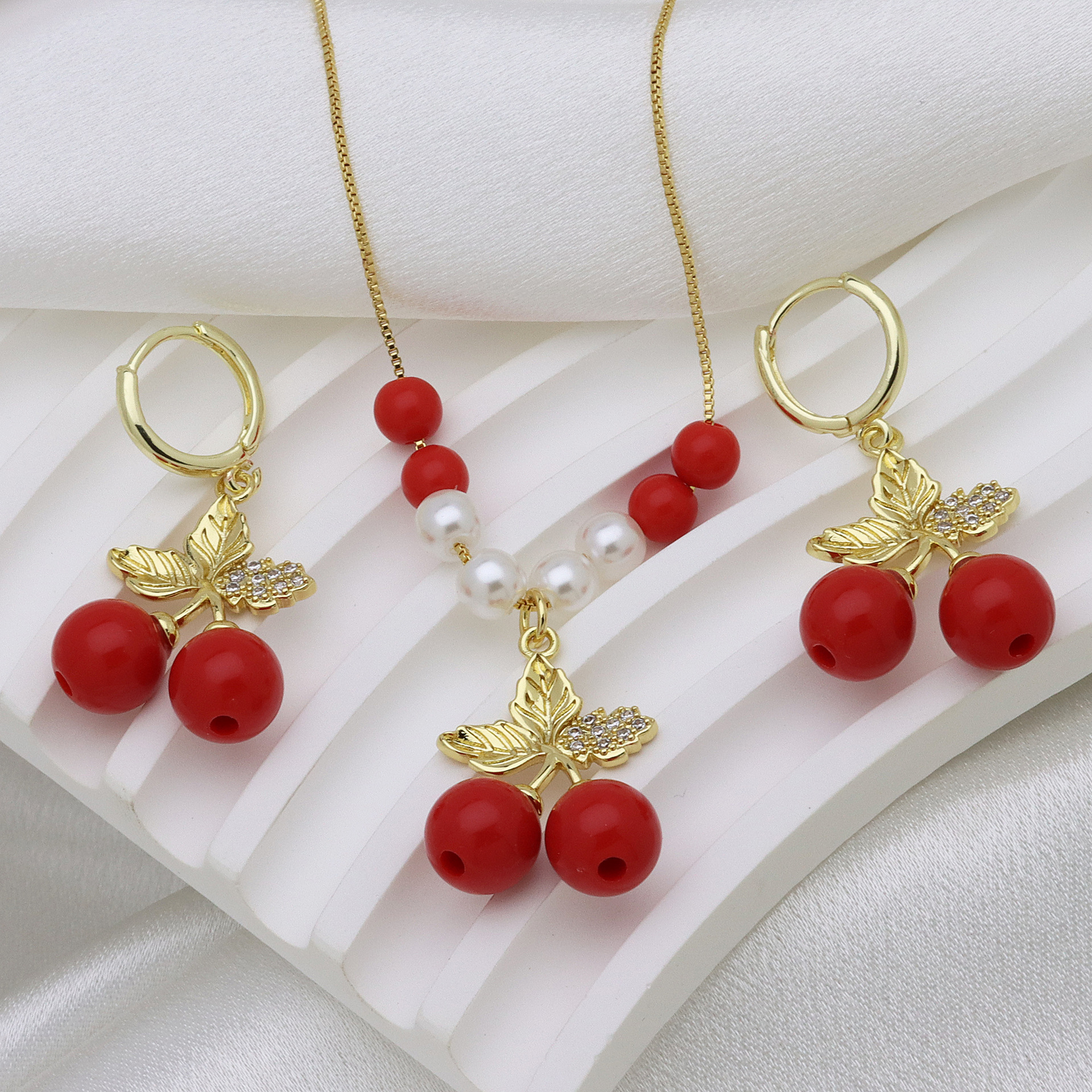 Micro zirconi Pave ottone Jewelry Set, Foglia, Placcato oro 18K, stili diversi per la scelta & Micro spianare cubic zirconia & per la donna & cavo, Venduto da PC