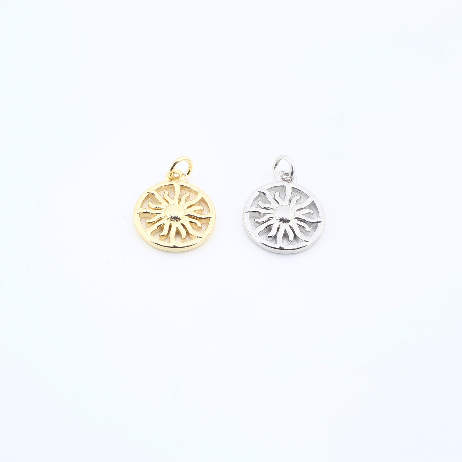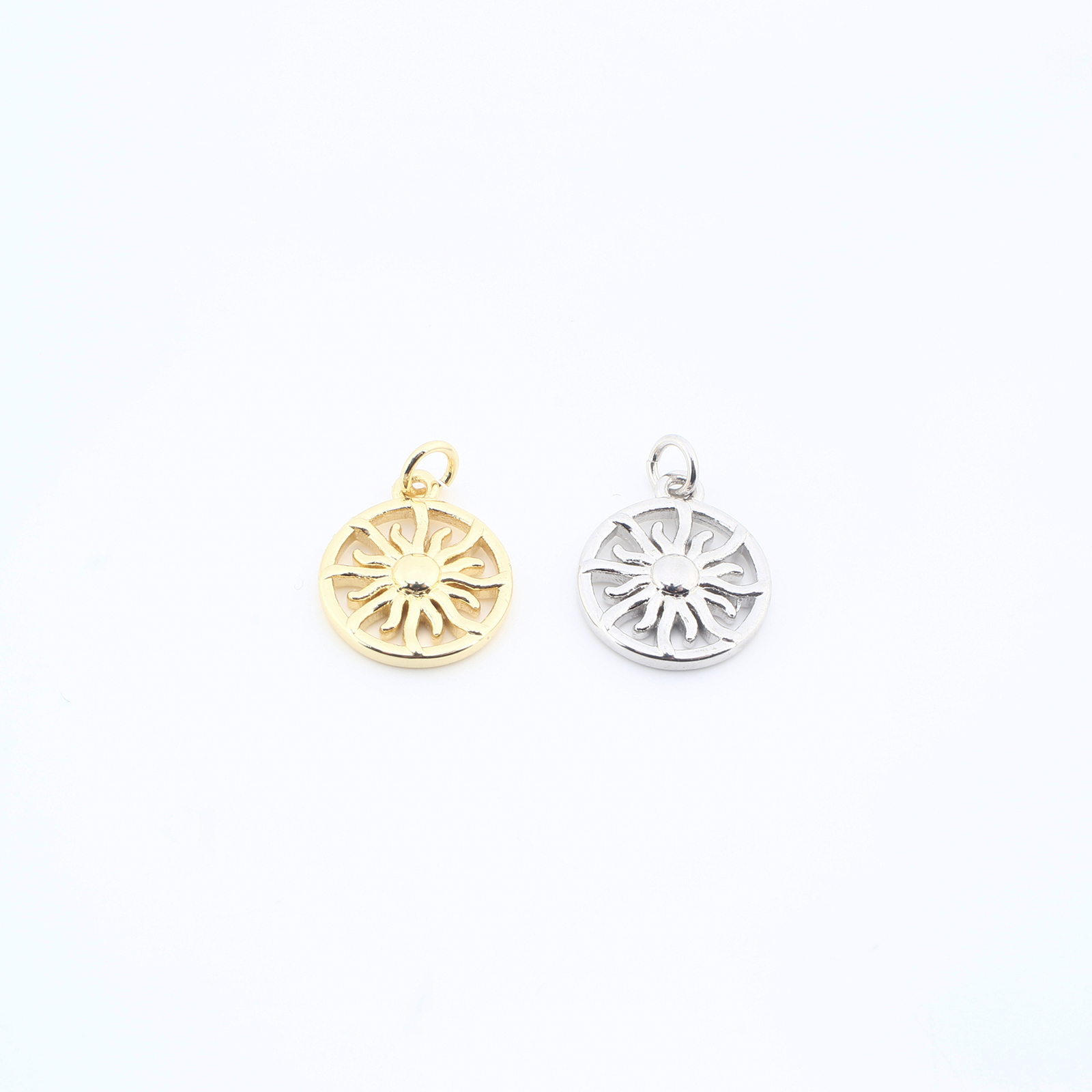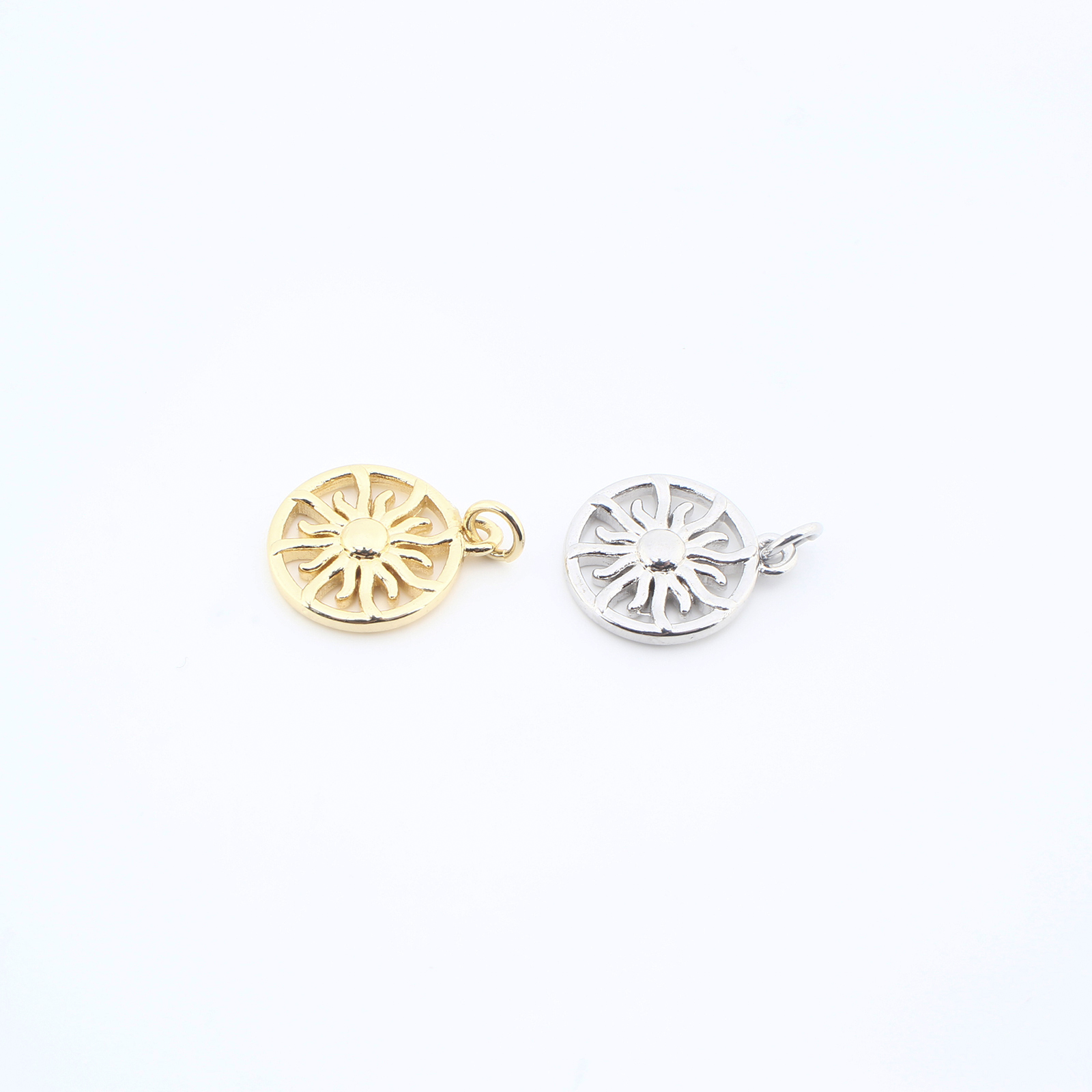 Monili d'ottone Ciondoli, ottone, sole, placcato, DIY, nessuno, assenza di nichel,piombo&cadmio, 14x12x2mm, Venduto da PC