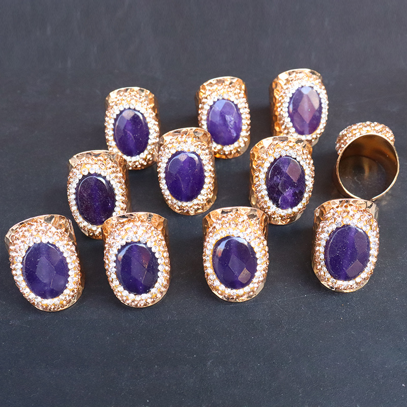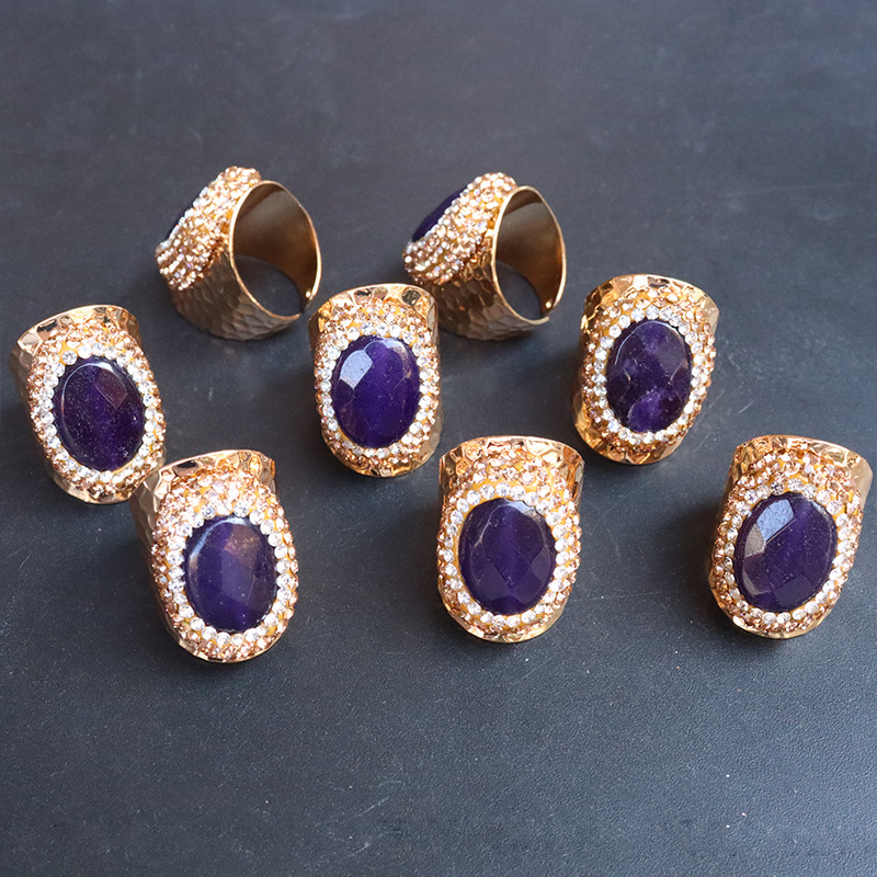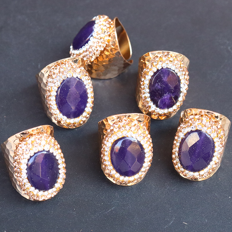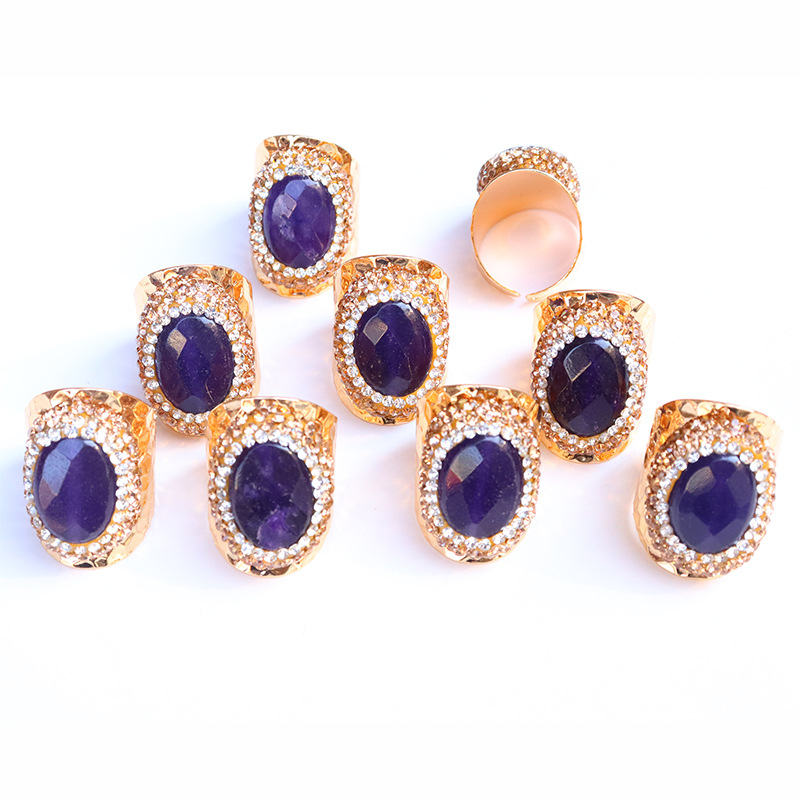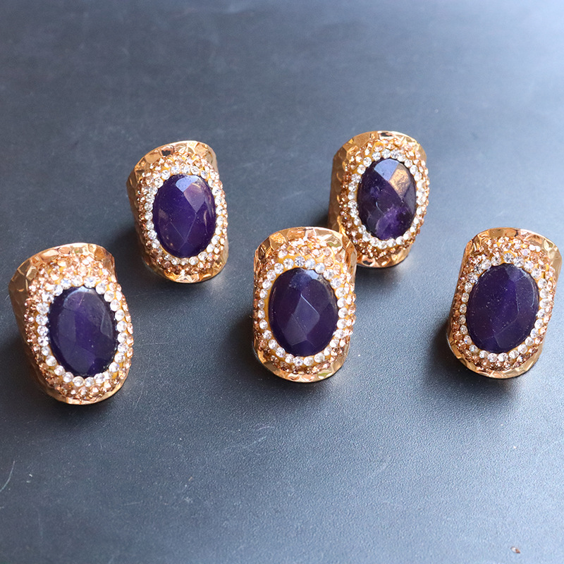 Naturale anello di barretta al quarzo, ottone, with ametista, placcato color oro, per la donna & con strass, viola, assenza di nichel,piombo&cadmio, inner diameter:17~20mm, Venduto da PC