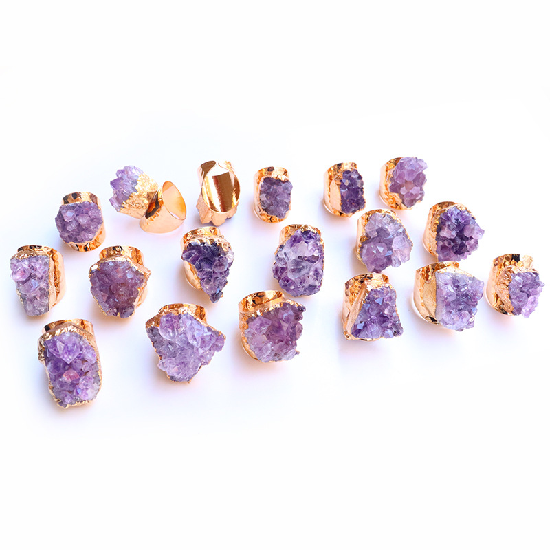 Naturale anello di barretta al quarzo, ottone, with ametista, placcato color oro, inviato casualmente & unisex, viola, assenza di nichel,piombo&cadmio, inner diameter:17~20mm, Venduto da PC