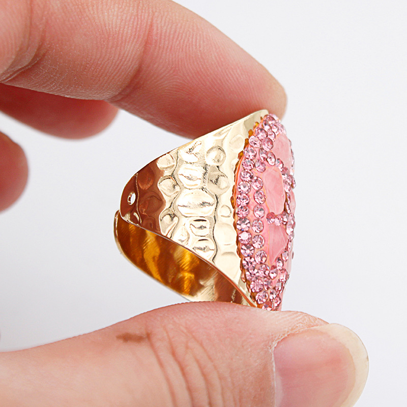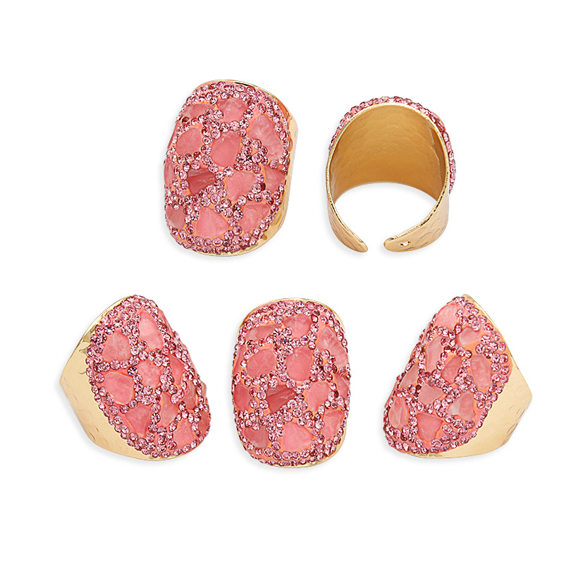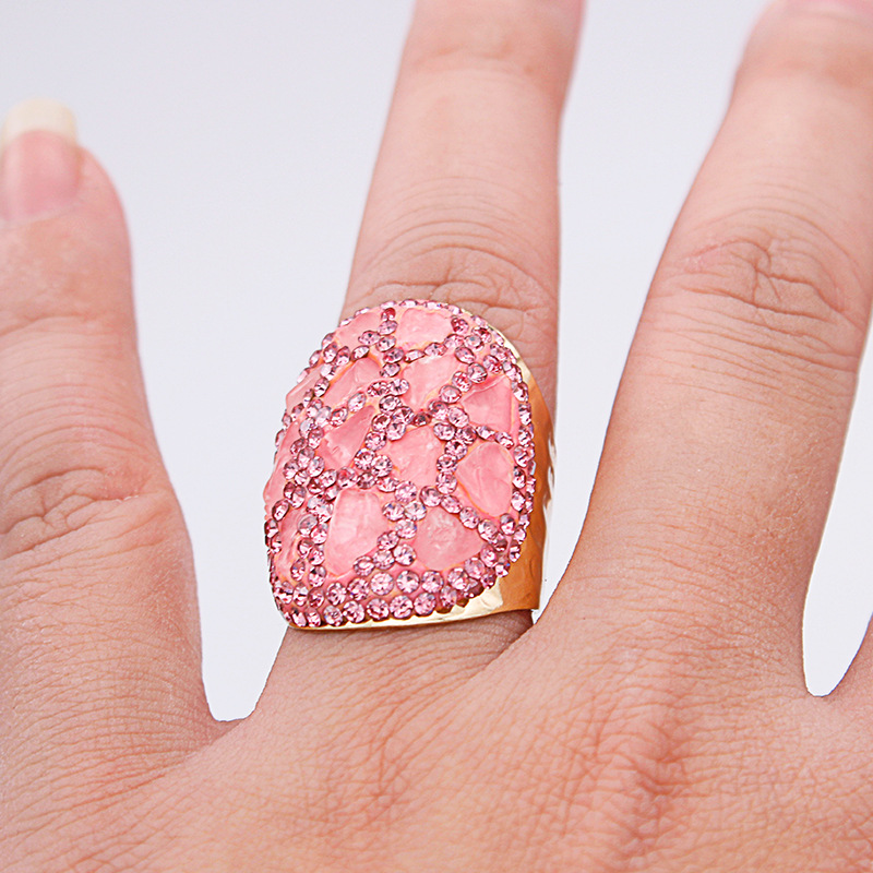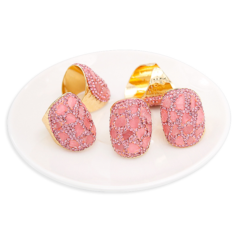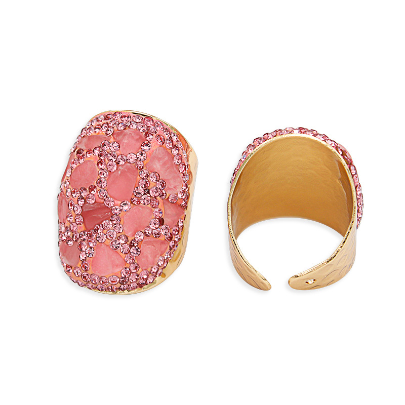 Naturale anello di barretta al quarzo, ottone, with quarzo rosa, placcato color oro, per la donna & con strass, rosa, assenza di nichel,piombo&cadmio, inner diameter:17~20mm, Venduto da PC