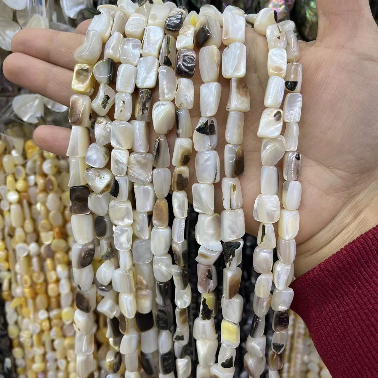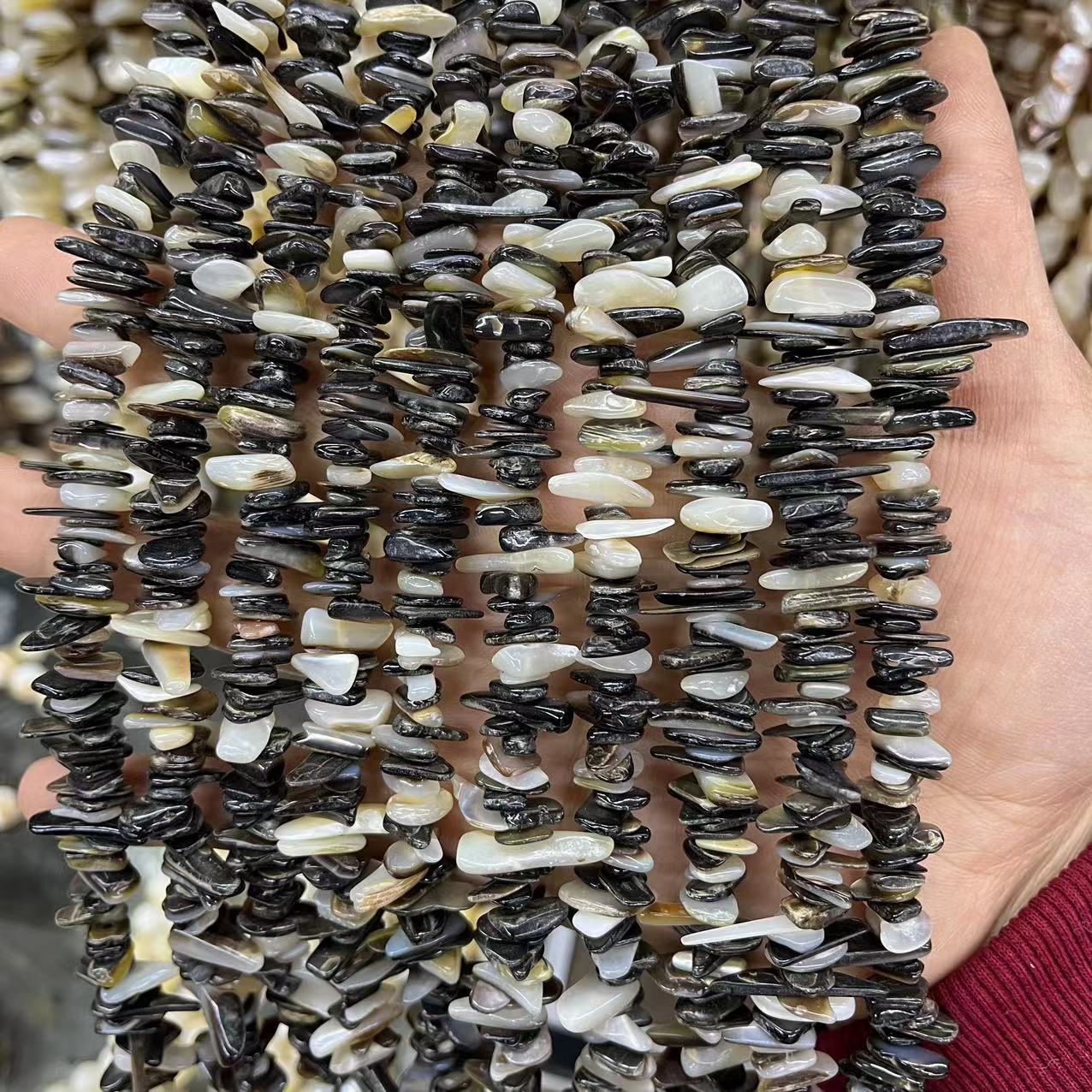 1:Black shell 8*12MM/about 33 pieces2:Yellow shell 12MM/about 27 pieces3:Yellow shell 7-8MM/about 39 pieces4:Black shell 7-8MM/about 39 pieces6:Penguin shell 5-8MM/about 41 pieces7:Penguin shell 8-10MM/about 39 pieces8:Black shell gravel sheets/about 150 pieces9:Yellow shell 9-15MM/about 97 pieces10:Black shell gravel 14-16MM/about 69 pieces
