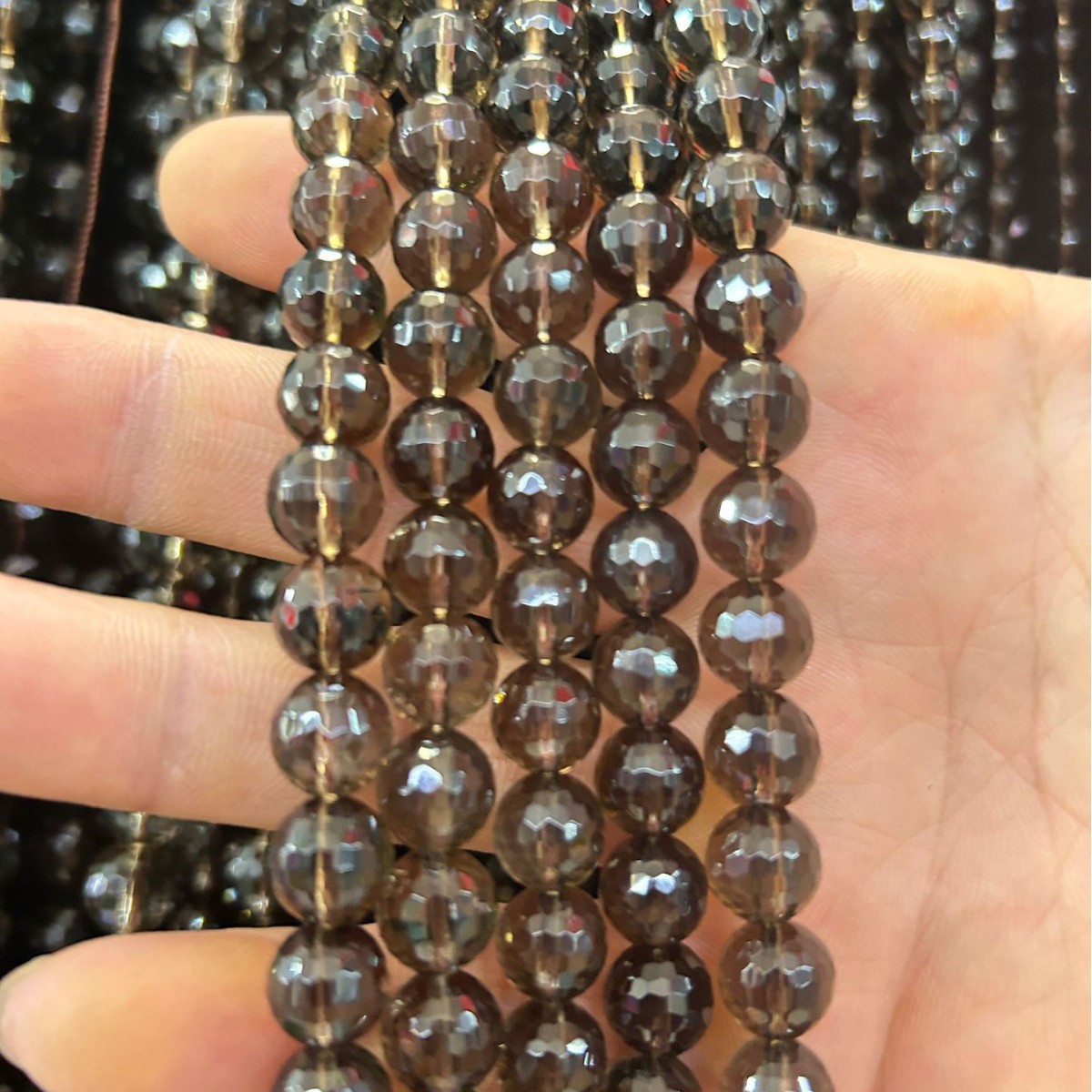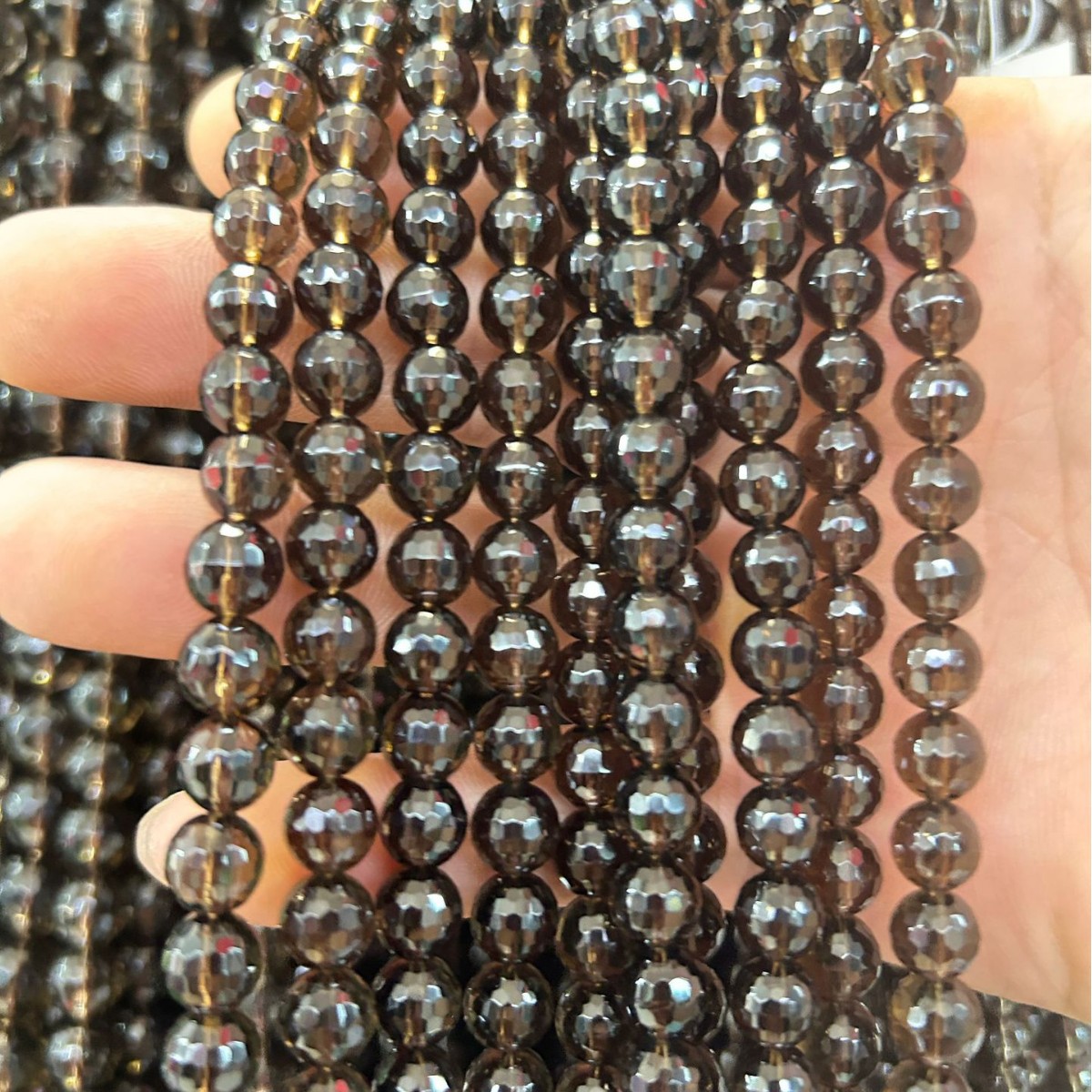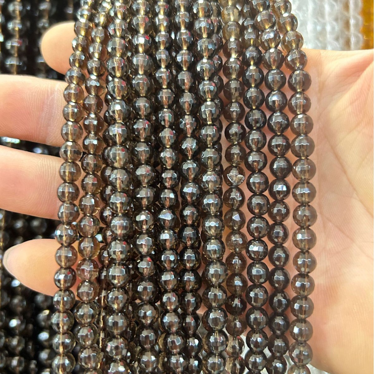 Naturale Smoky Quartz Beads, quarzo affumicato, Cerchio, lucido, DIY & formato differente per scelta & sfaccettati, Lunghezza Appross. 38 cm, Venduto da PC