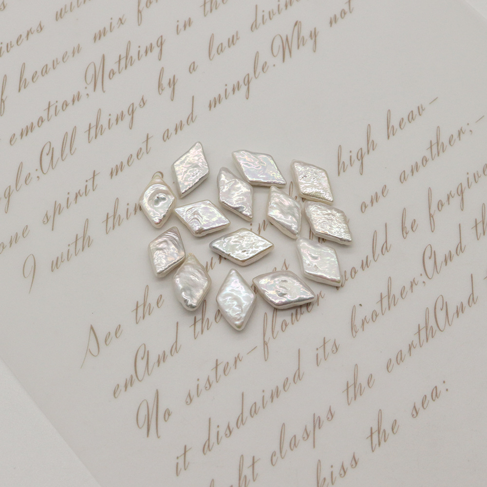 Nessun buco coltivate in acqua dolce Perla, perla d'acquadolce coltivata naturalmente, Rhombus, DIY & non forato, bianco, 9-15mm, Venduto da PC