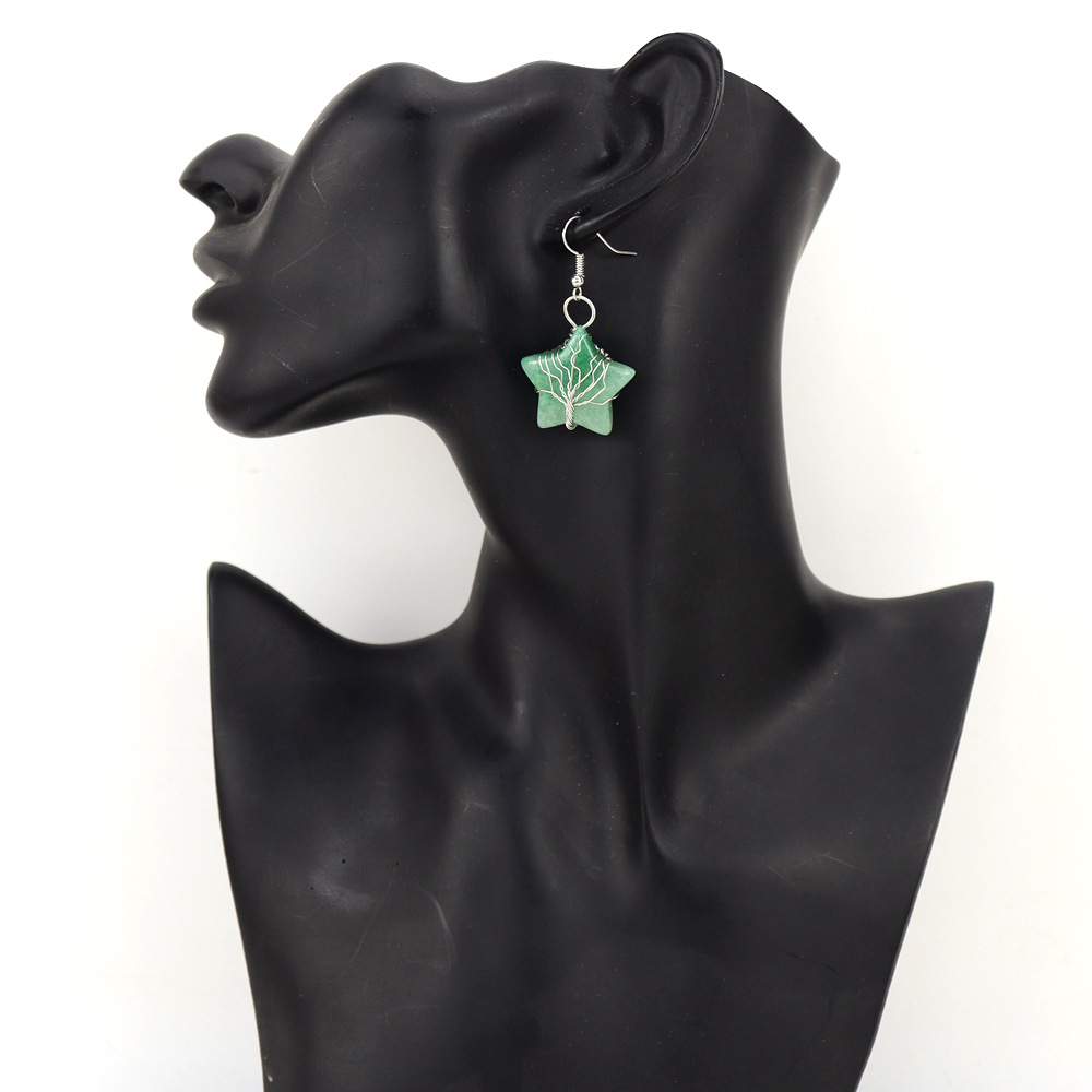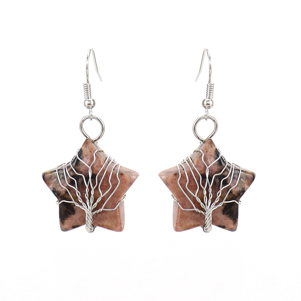 Orecchini con gemme, pietra preziosa, with filo di ottone & lega in zinco, Stella, fatto a mano, gioielli di moda & materiali diversi per la scelta & per la donna, argento, 50x25mm, Venduto da coppia