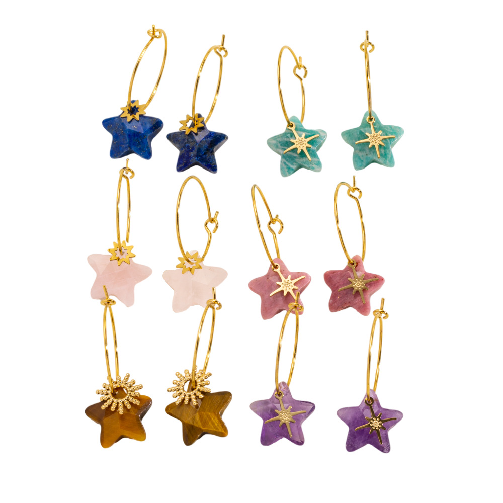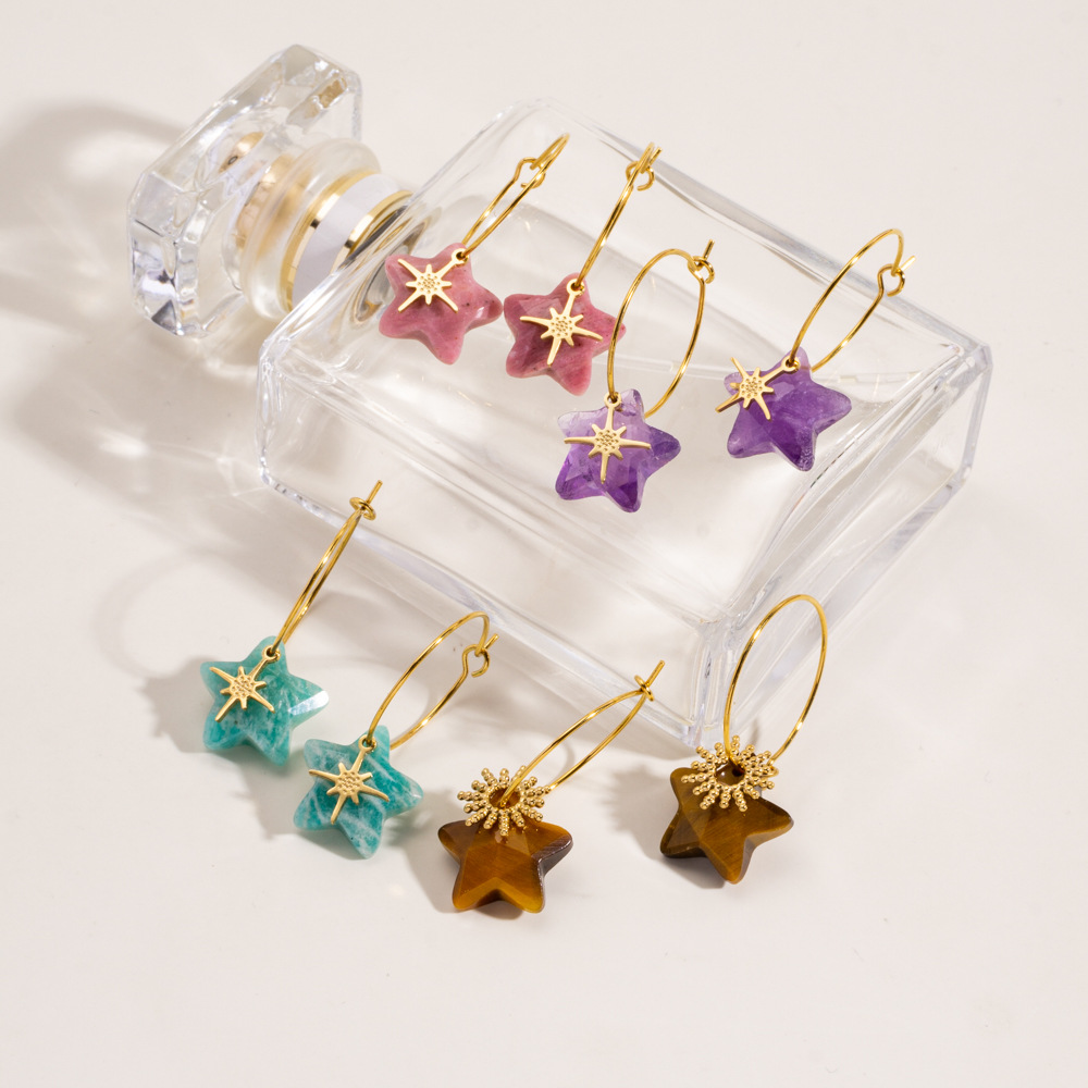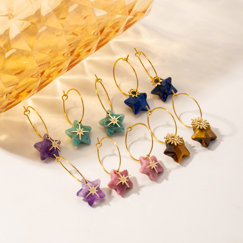 Orecchini con gemme, 304 acciaio inox, with Pietra naturale, Stella, placcato, gioielli di moda, nessuno, Venduto da coppia