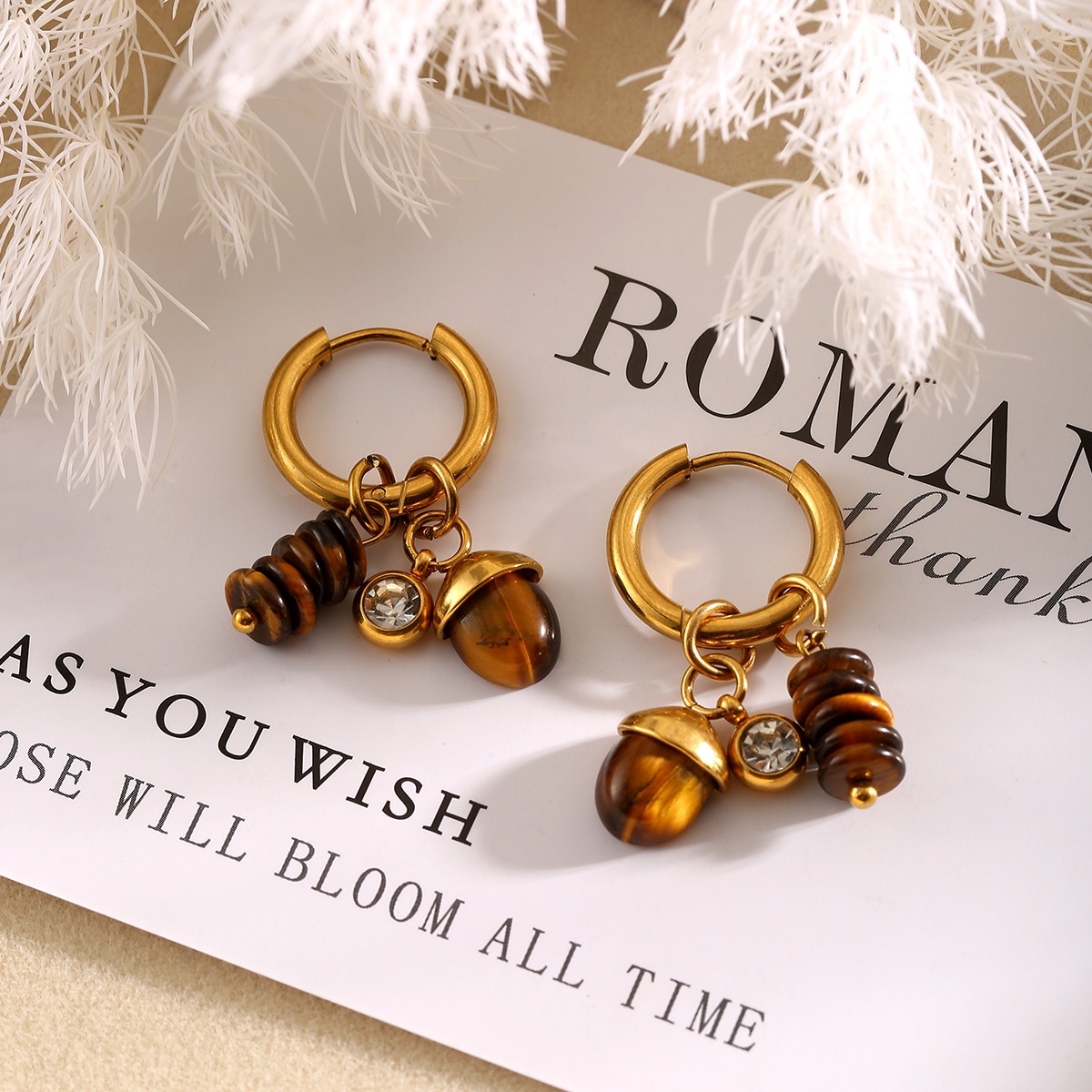Orecchini con gemme, acciaio inox, with pietra preziosa, placcato color oro, stili diversi per la scelta & per la donna & con zirconi cubici, nessuno, Venduto da coppia