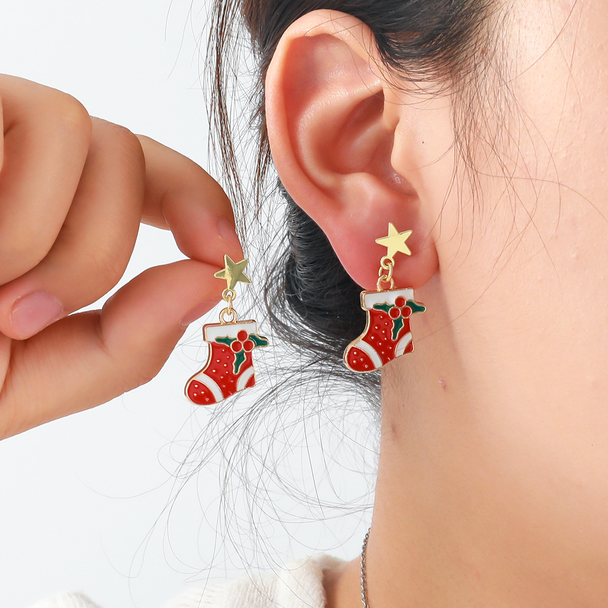 Orecchini di Natale, lega in zinco, placcato color oro, Design natalizio & smalto, nessuno, Venduto da coppia