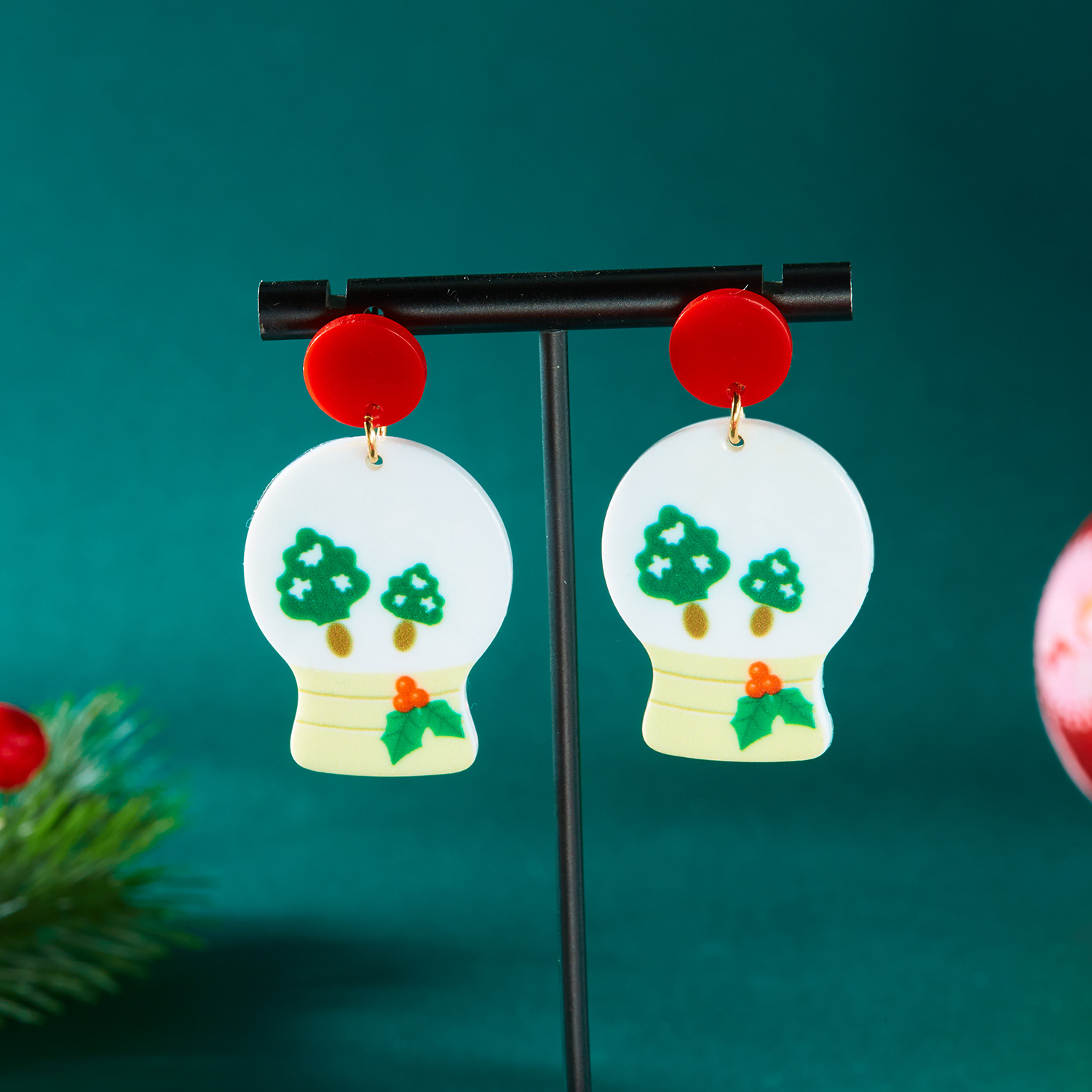 Orecchini di Natale, acrilico, with 304 acciaio inox, Tazza, Stampa, Design natalizio & per la donna & a due lati, rosso, Venduto da coppia