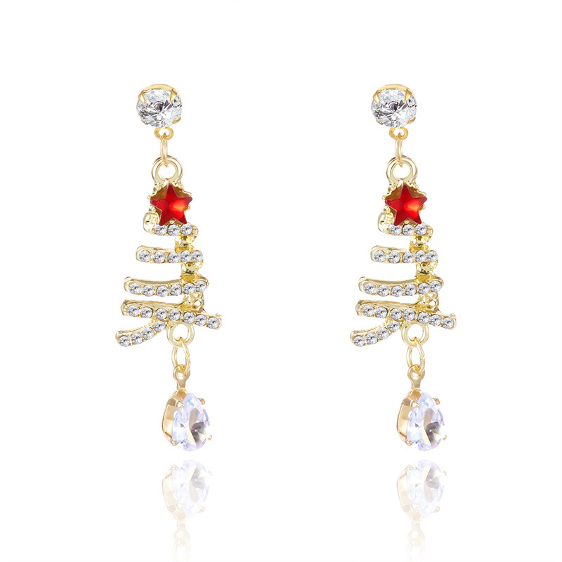 Orecchini di Natale, lega in zinco, placcato color oro, Design natalizio & smalto & con strass, nessuno, Venduto da coppia