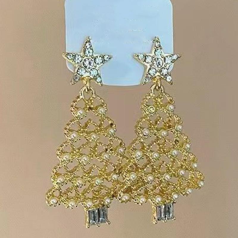 Orecchini di Natale, lega in zinco, Albero di Natale, placcato, gioielli di moda & per la donna & con strass, dorato, 53x30mm, Venduto da coppia