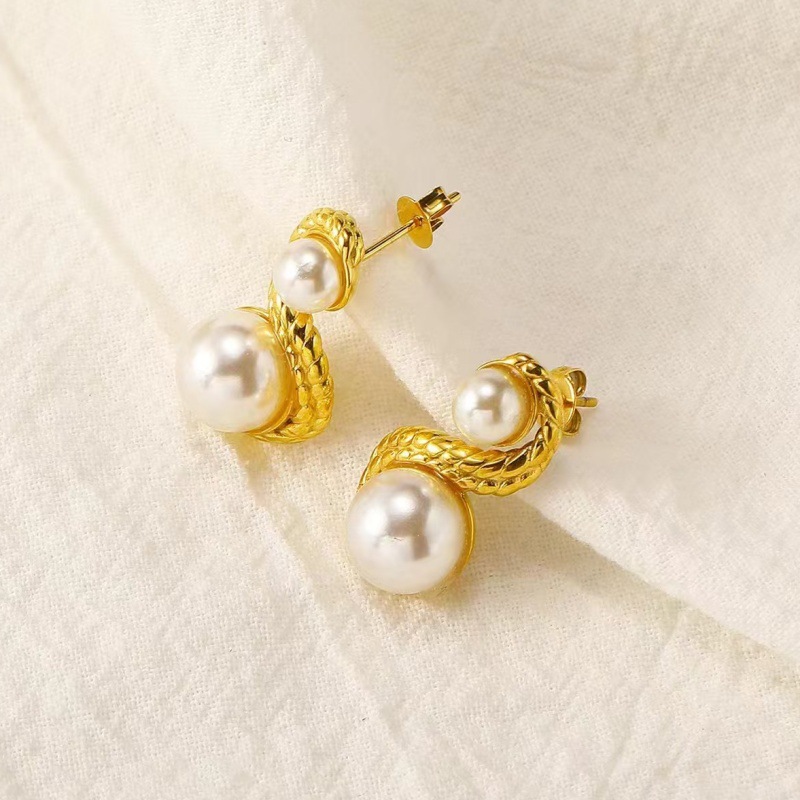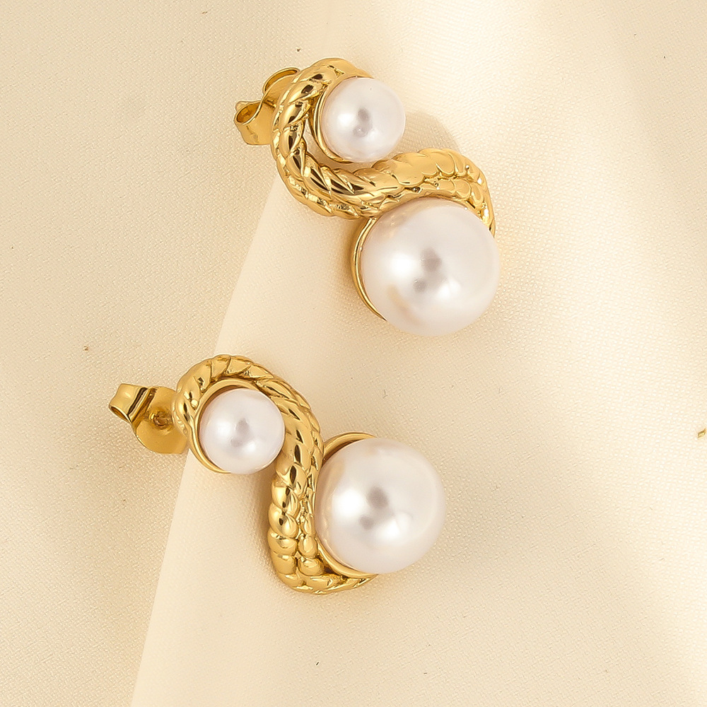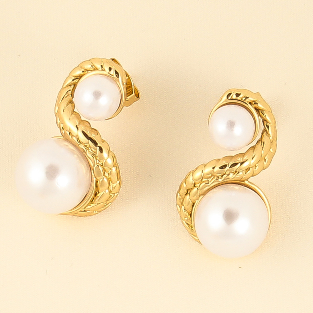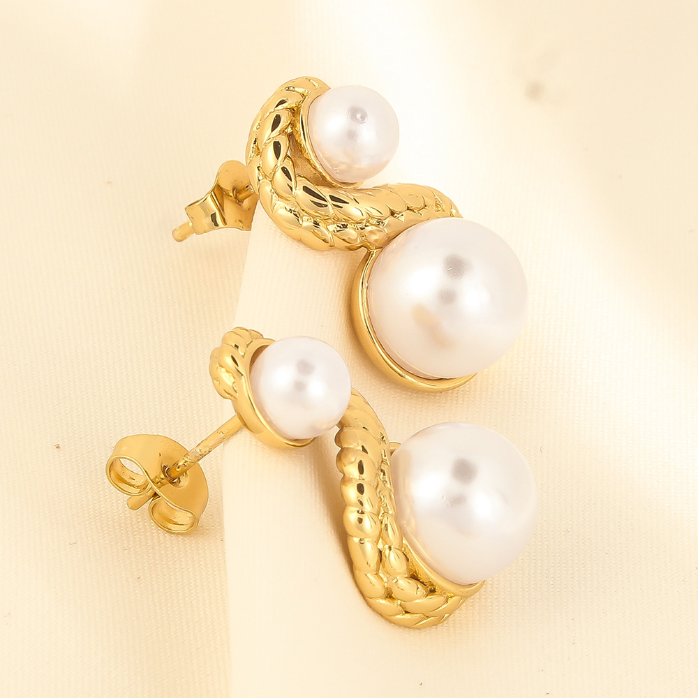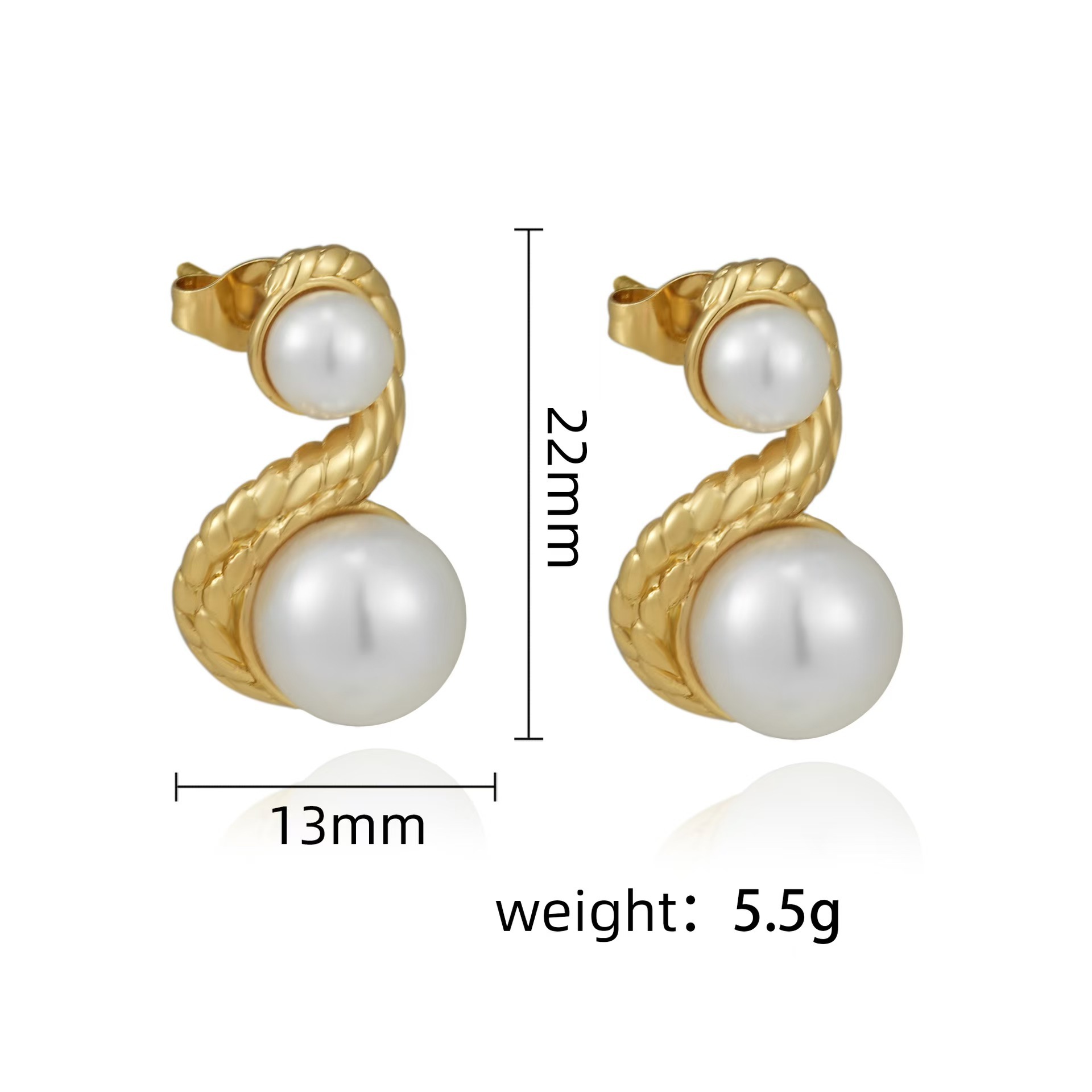 Orecchini in acciaio inossidabile, 304 acciaio inox, with Shell Pearl, placcato, gioielli di moda & per la donna, dorato, Venduto da coppia