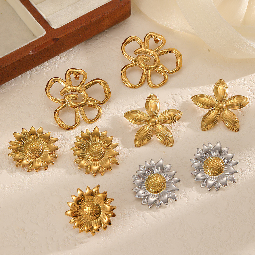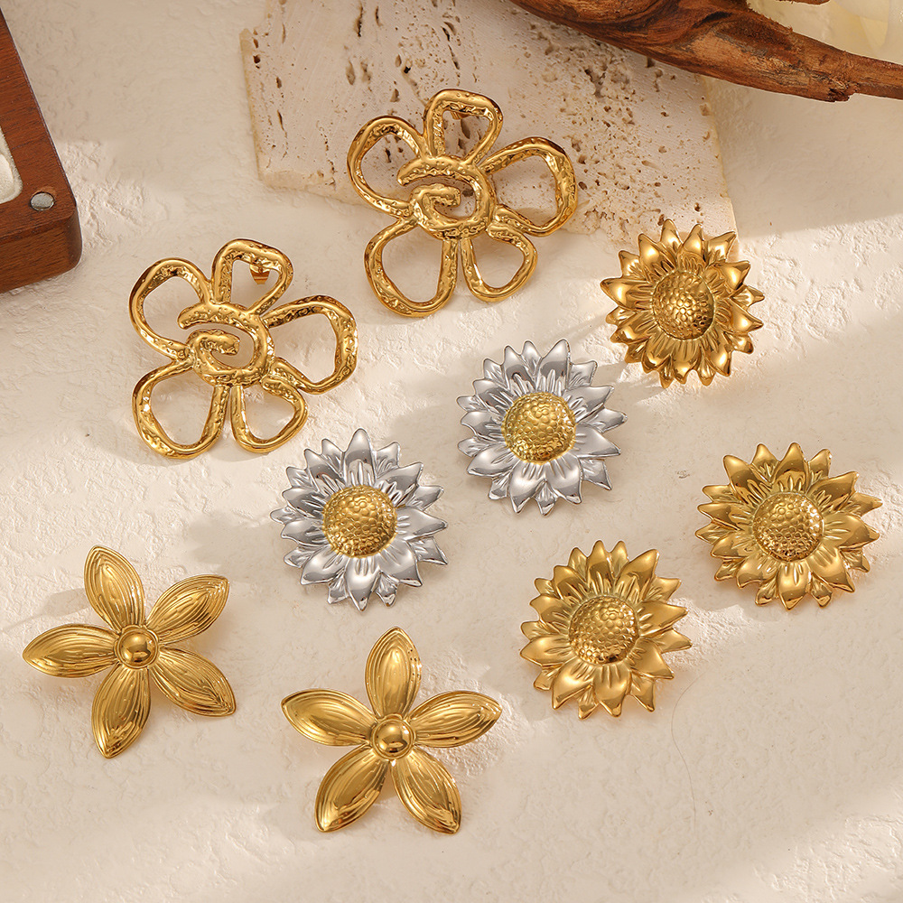 Orecchini in acciaio inossidabile, 304 acciaio inox, Fiore, placcato, gioielli di moda, nessuno, Venduto da coppia