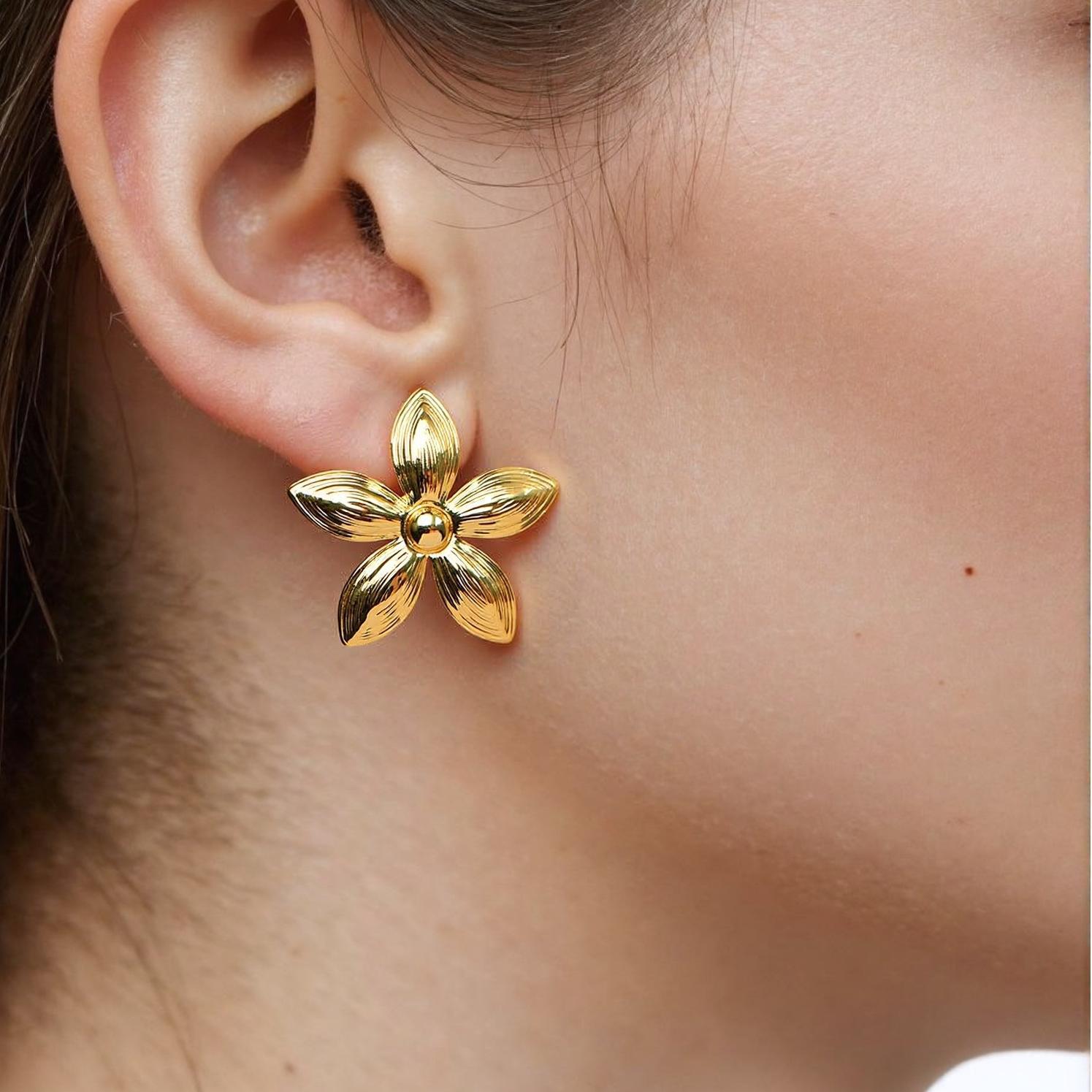 Orecchini in acciaio inossidabile, 304 acciaio inox, Fiore, placcato, gioielli di moda & per la donna, dorato, Venduto da coppia