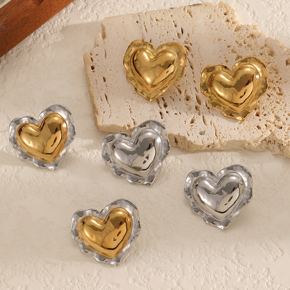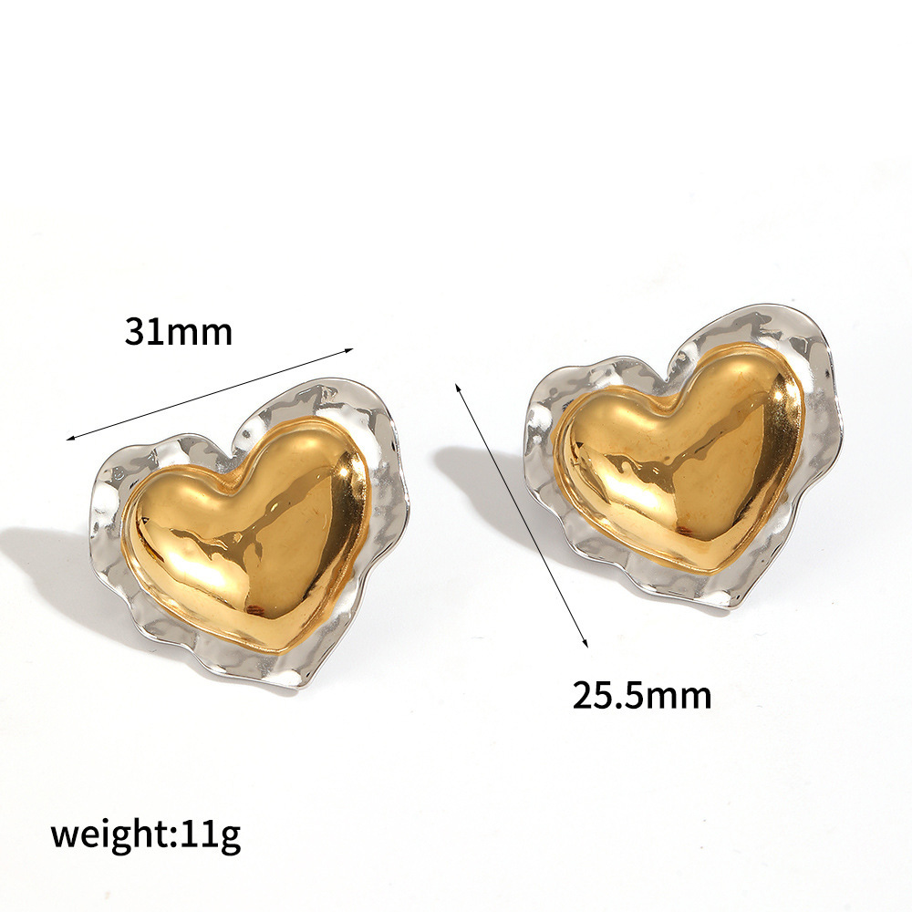 Orecchini in acciaio inossidabile, 304 acciaio inox, Cuore, placcato, gioielli di moda, nessuno, Venduto da coppia