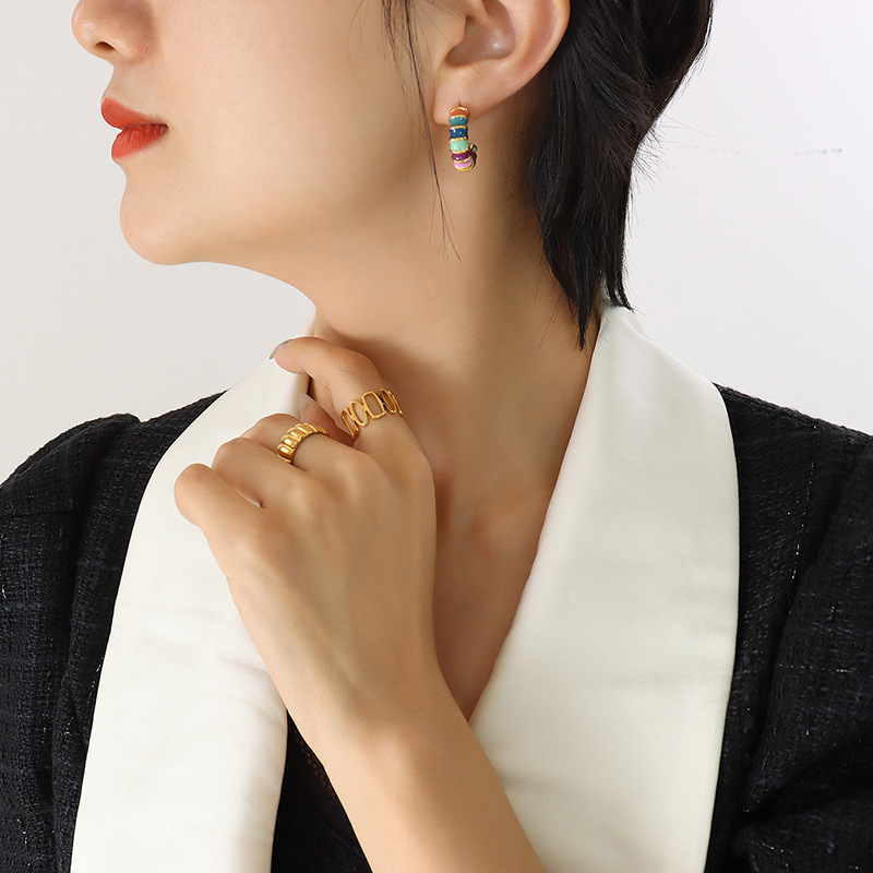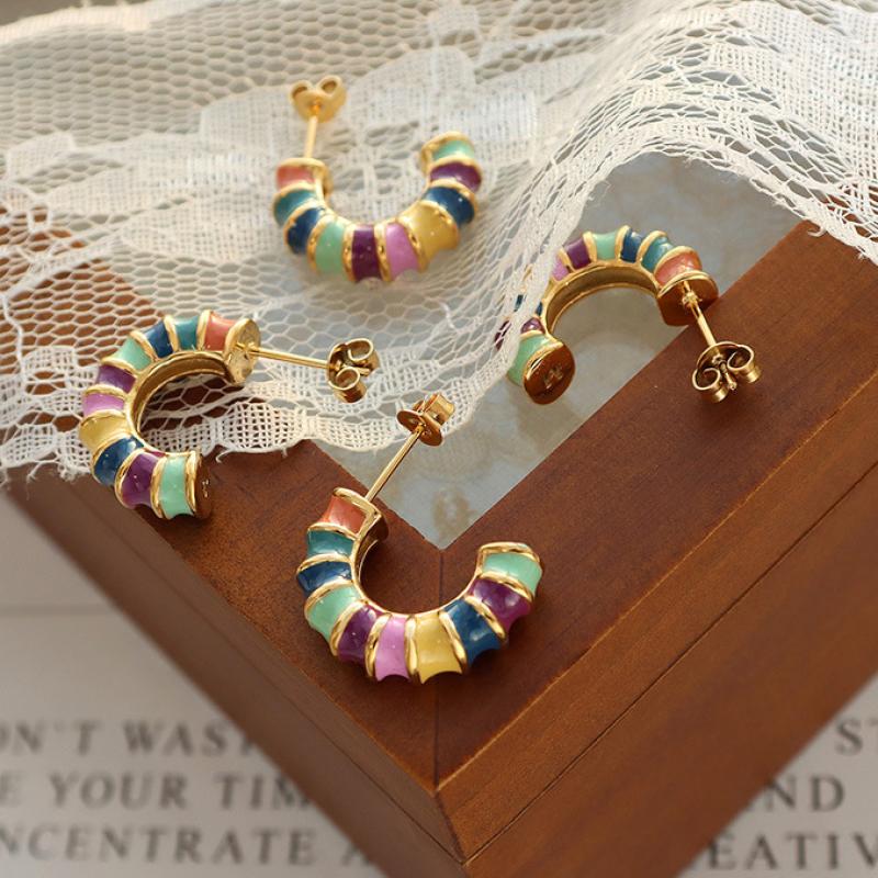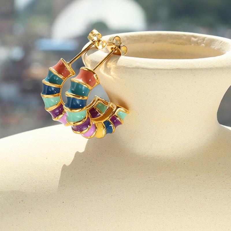 Orecchini in acciaio inossidabile, 304 acciaio inox, Placcato oro 18K, gioielli di moda & per la donna & smalto, multi-colore, 20x6mm, Venduto da coppia