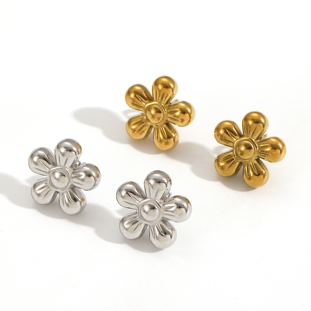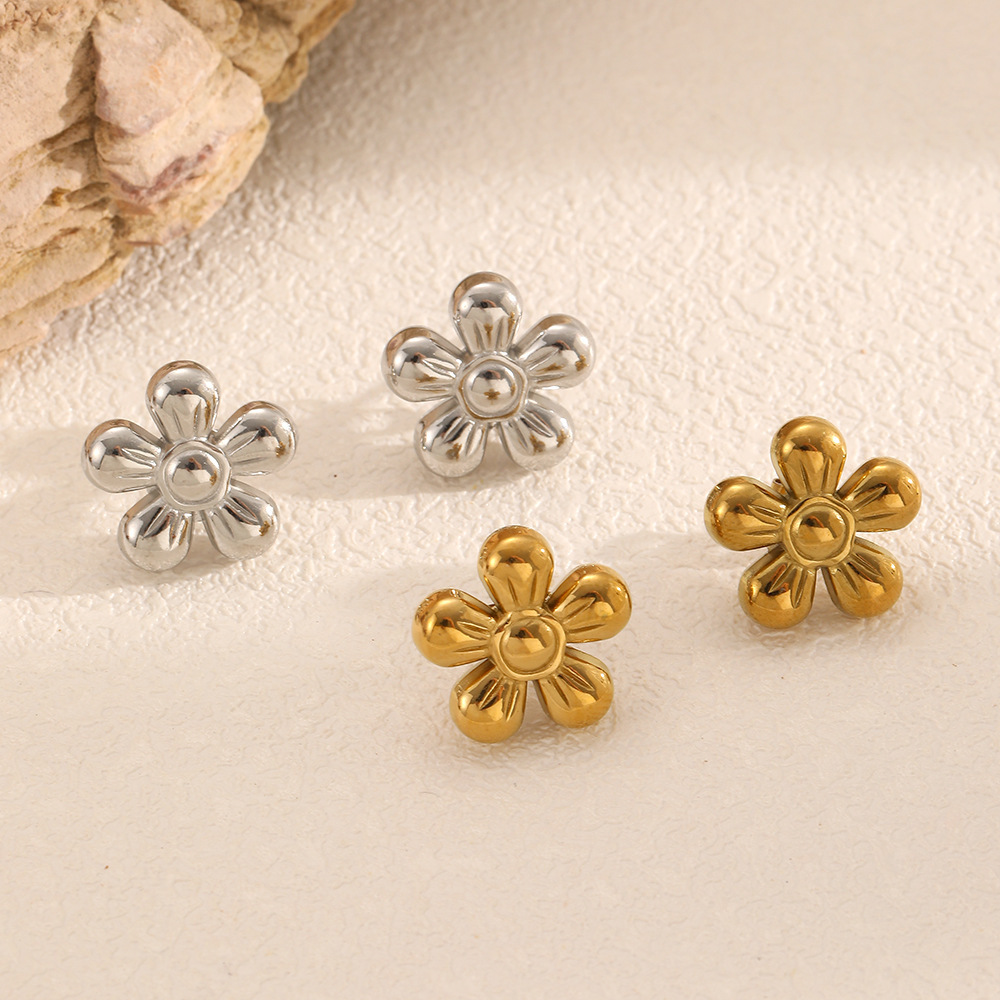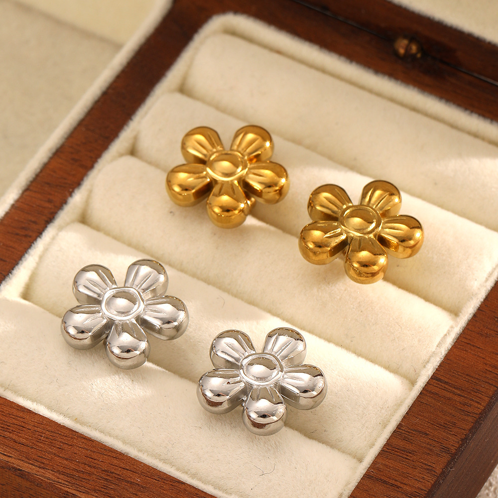 Orecchini in acciaio inossidabile, 304 acciaio inox, Fiore, placcato, gioielli di moda, nessuno, Venduto da coppia