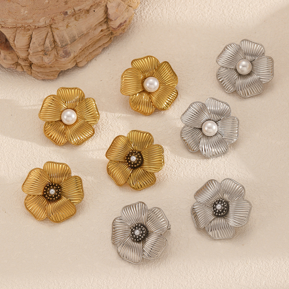 Orecchini in acciaio inossidabile, 304 acciaio inox, with perla in plastica, Fiore, placcato, gioielli di moda, nessuno, Venduto da coppia