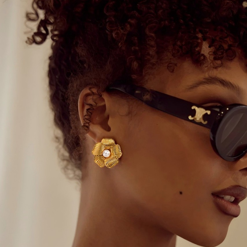Orecchini in acciaio inossidabile, 304 acciaio inox, Fiore, placcato, gioielli di moda & per la donna, dorato, Venduto da coppia