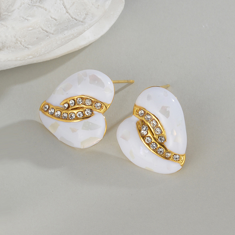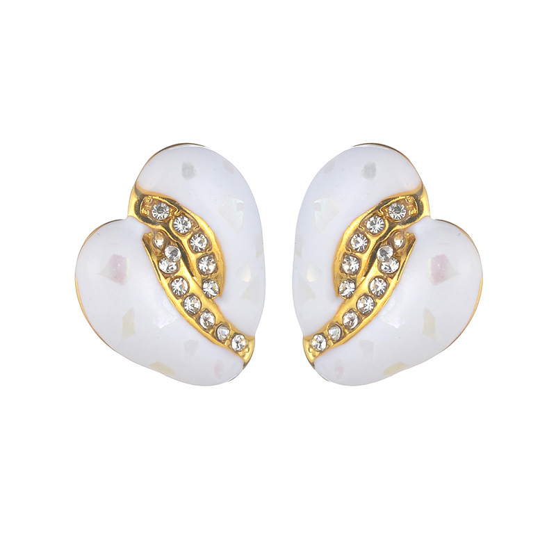 Orecchini in acciaio inossidabile, 304 acciaio inox, with resina, Cuore, placcato, gioielli di moda & per la donna & con strass, dorato, Venduto da coppia