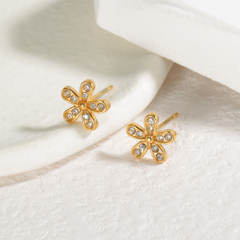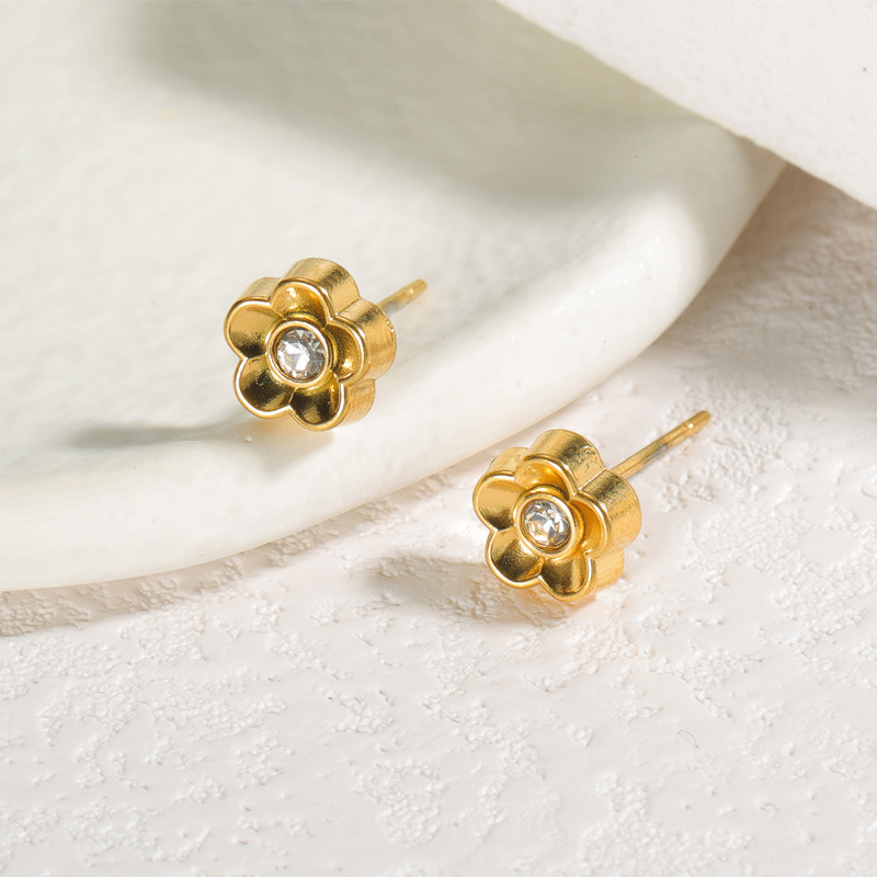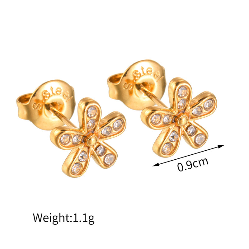 Orecchini in acciaio inossidabile, 304 acciaio inox, Fiore, placcato, gioielli di moda & per la donna & con strass, dorato, Venduto da coppia