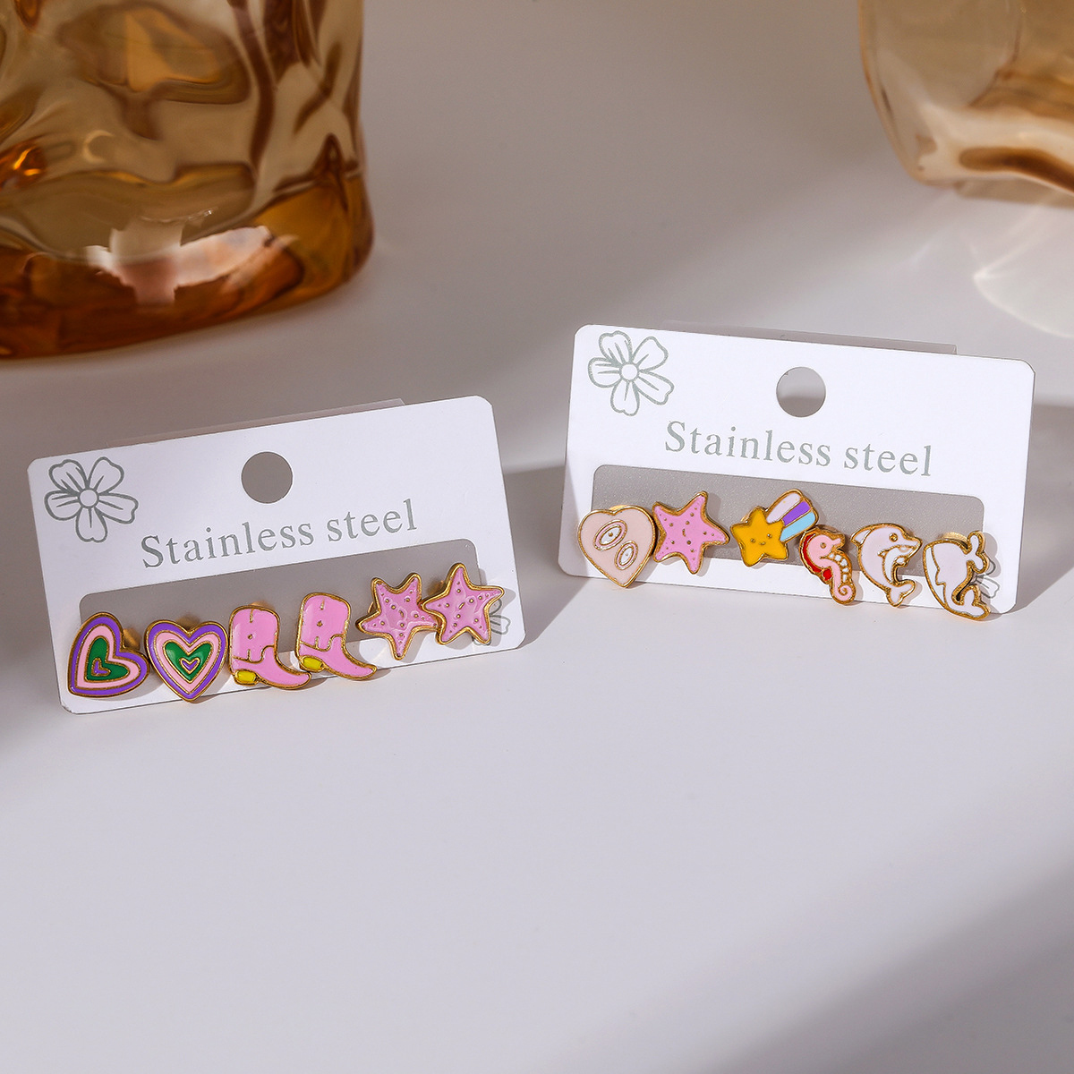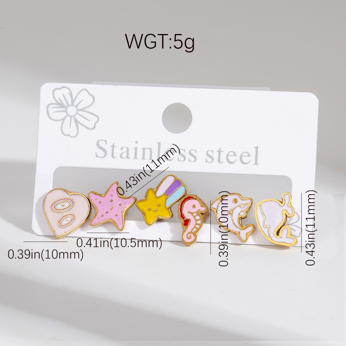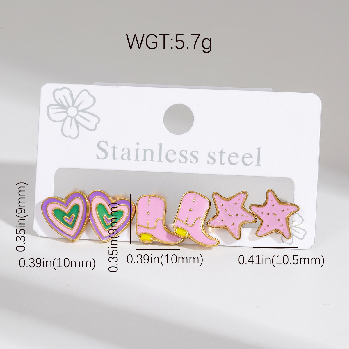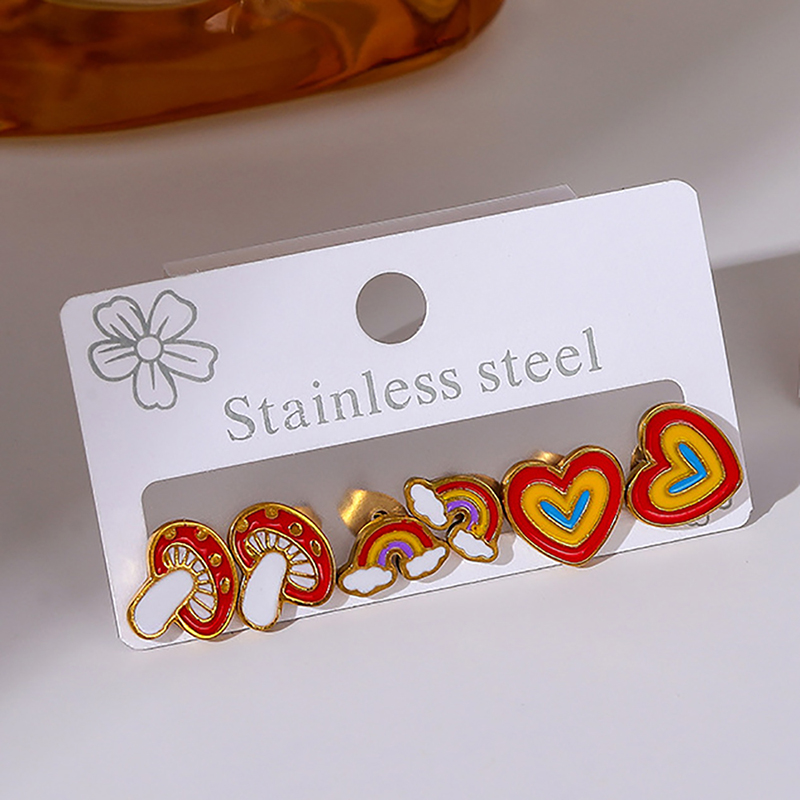 Orecchini in acciaio inossidabile, 304 acciaio inox, Placcato oro 18K, tre pezzi & stili diversi per la scelta & per la donna & smalto, Venduto da set