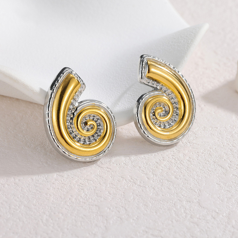 Orecchini in acciaio inossidabile, 304 acciaio inox, Lumaca di mare, placcato, gioielli di moda & per la donna & bicolore, Venduto da coppia