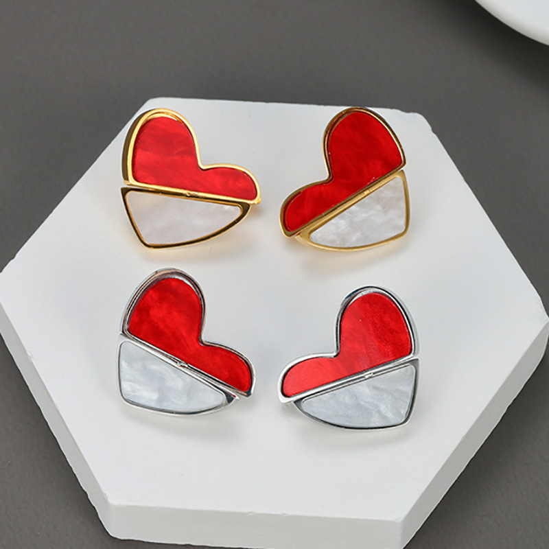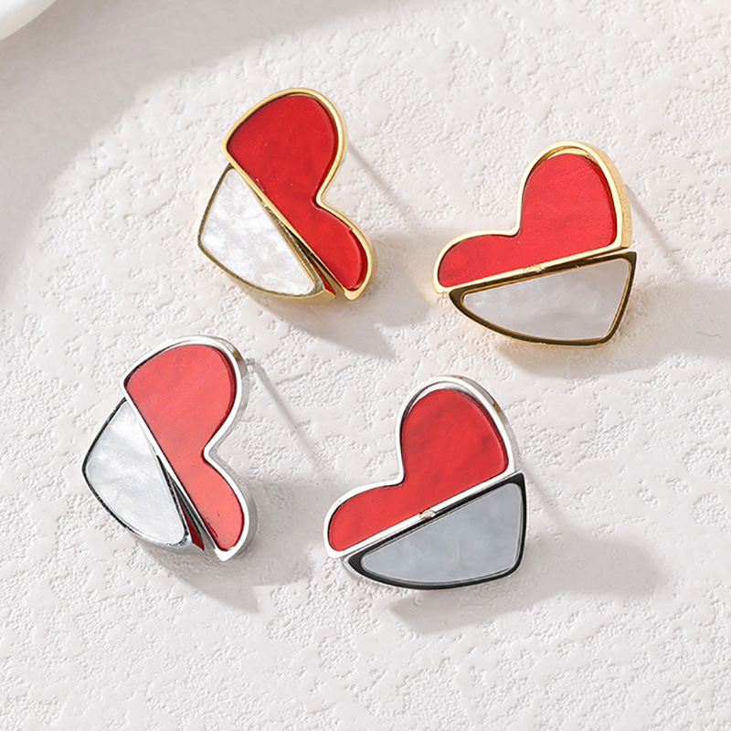 Orecchini in acciaio inossidabile, 304 acciaio inox, Cuore, placcato, per la donna & smalto & bicolore, nessuno, Venduto da coppia